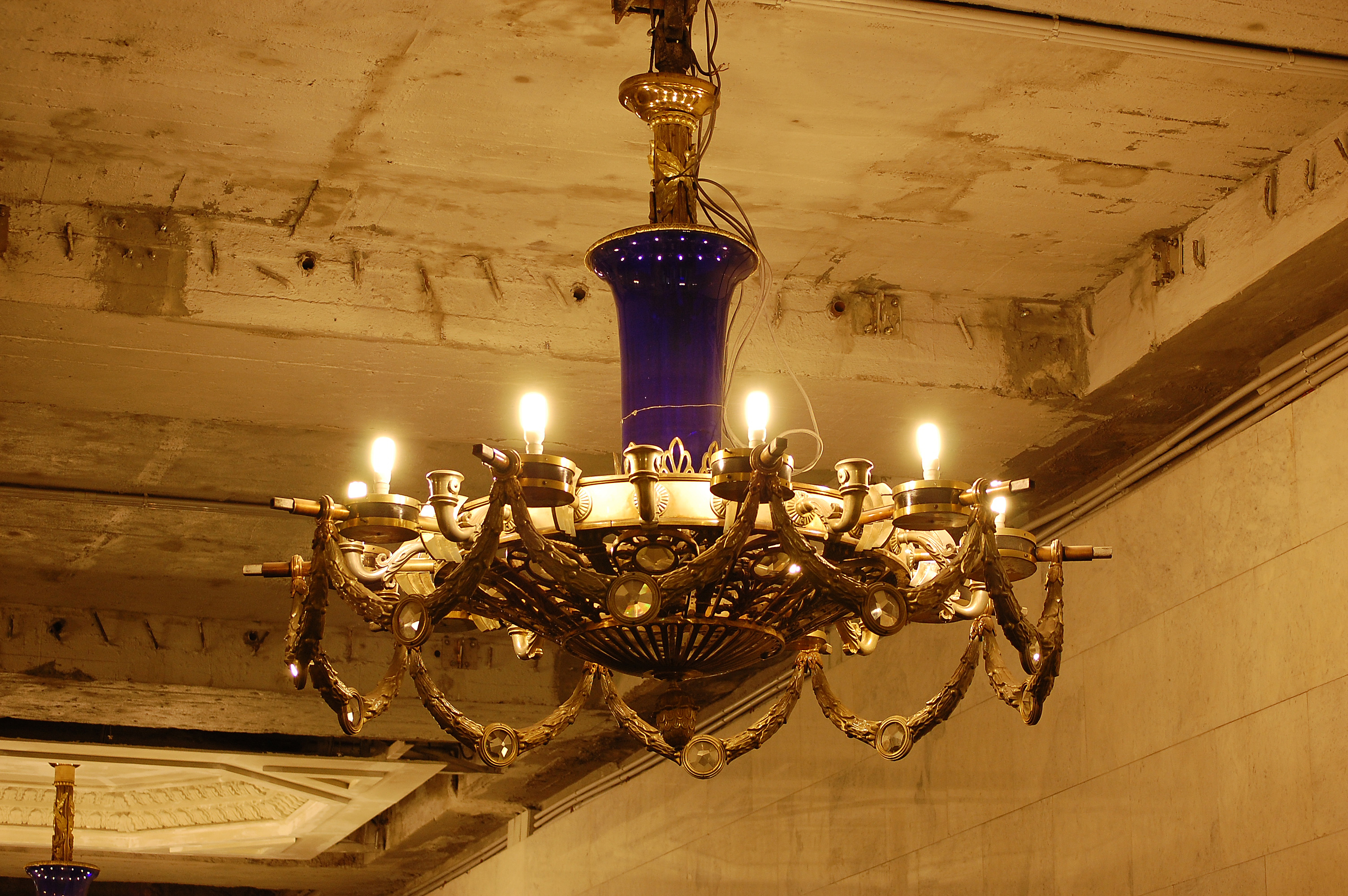 Однако ж, уже большая работа проведена, и темпы её явно опережающие. О качестве нового потолка можно порассуждать, конечно (а может, и не надо), но вот надежда увидеть реставрированные люстры рассыпалась прахом. Их лишь отмыли.