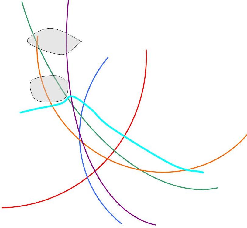Примерно удалось разместить 5 линий-дуг с нужными пересечениями, Нева получилась примерно реальной формы, острова тоже можно разместить.