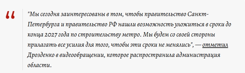Помнится, прошлый раз он обещал, что метро в Кудрово будет построено к 2025 году.