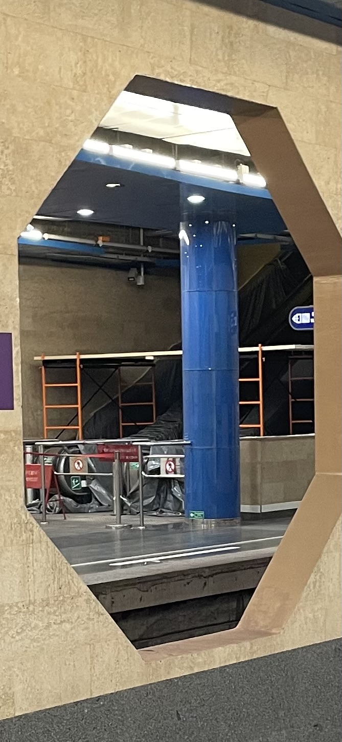 Внезапно в северном вестибюле, в кассовом зале, оклеили малярным скотчем стены под потолком по периметру, всё дверные коробки, приборы и т.д. Красить что-ли собрались?