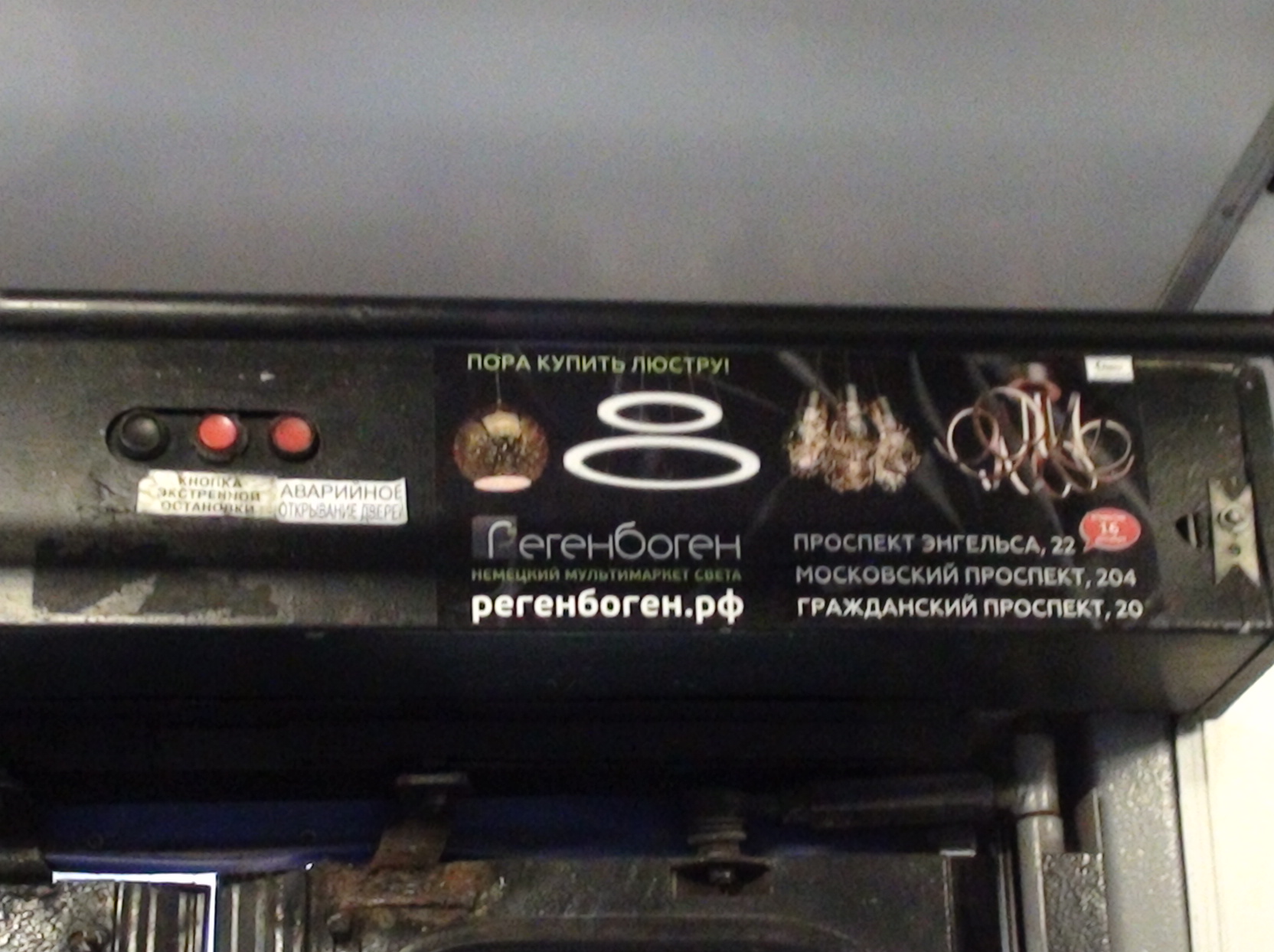 Kaamoos писал(а):В старых вагонах СТТП (на 04**, Кузнечики), появилась внутренняя реклама