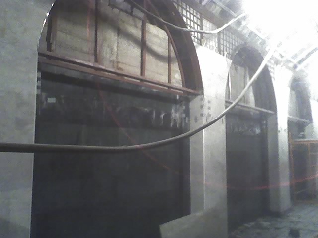 Данные трубы - гильзы для пропуска кабелей, выполняющие защитную функцию. На всех переходных мостиках первой очереди ФР есть такие конструкции. Отделка стен перехода из камня.