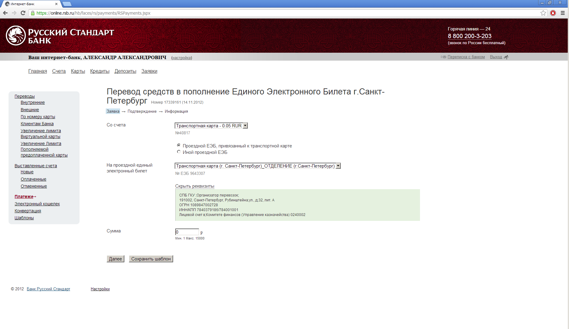 Банк Русский Стандарт*, один из лидеров рынка кредитных карт, запустил новую услугу дистанционного пополнения транспортного приложения для держателей «Транспортной карты» в городе Санкт-Петербурге.