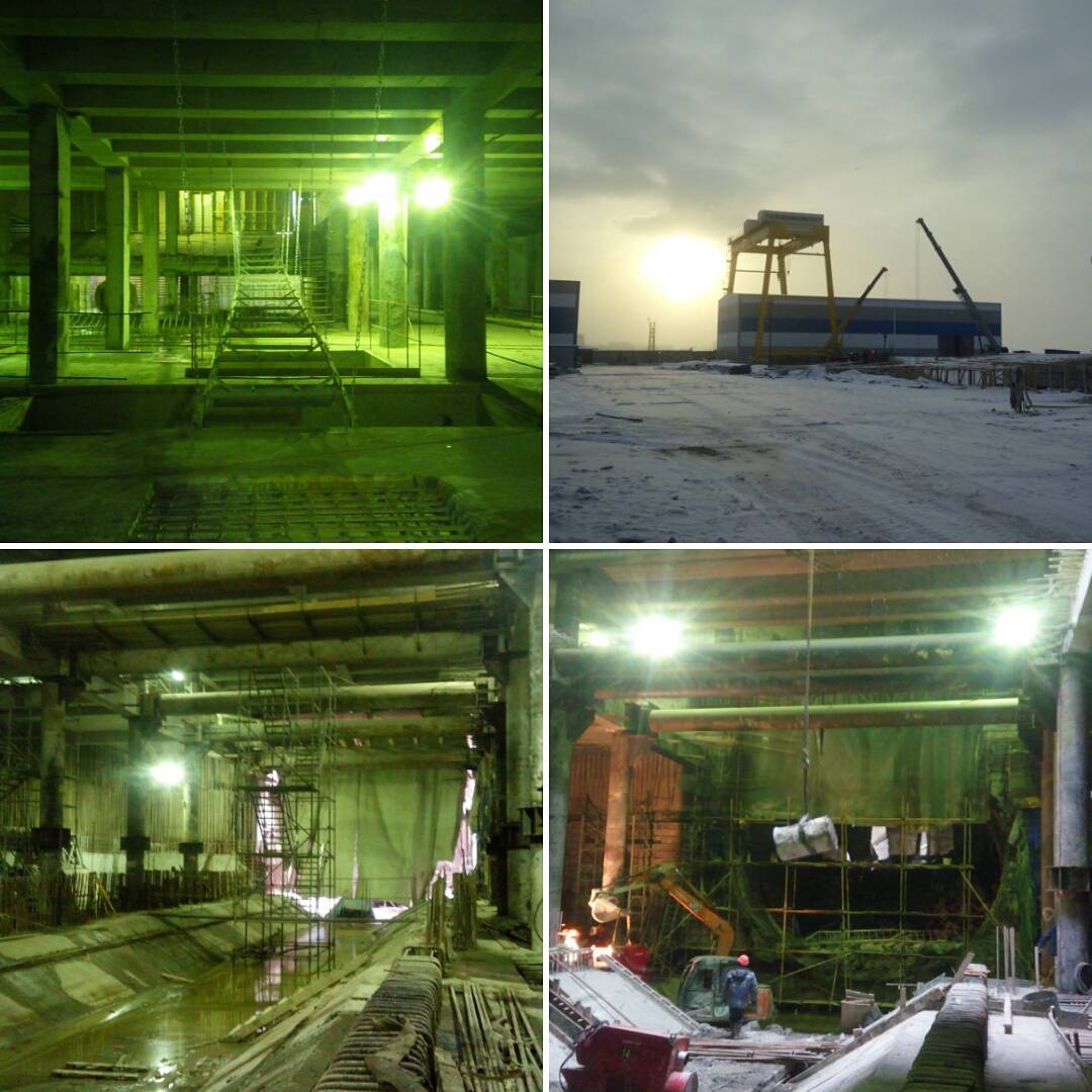 Станция метро «Новокрестовская» практически возведена в конструкциях. Для ускорения стройки здесь одновременно занимаются разными видами работ: внизу заканчивают рыть грунт экскаваторы, а на верхнем ярусе приступают к отделке. Задача на ближайшее будущее - отремонтировать и пропустить «транзитом» проходческий щит «Надежда».