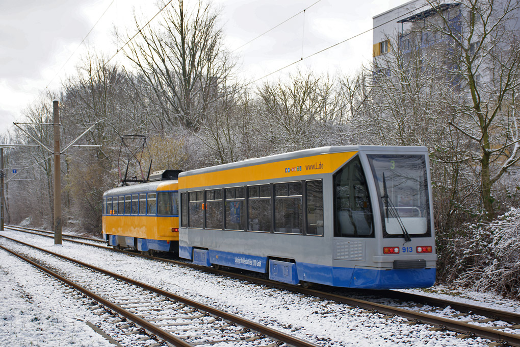 На СТТСе найдено интересное фото из Лейпцига. СМЕ из разных вагонов: Татра+Бомбардье. Но самый прикол даже не в том, что это