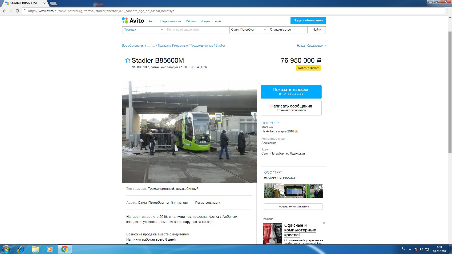 PS В настоящий момент объявления уже не существует (купили наверное)