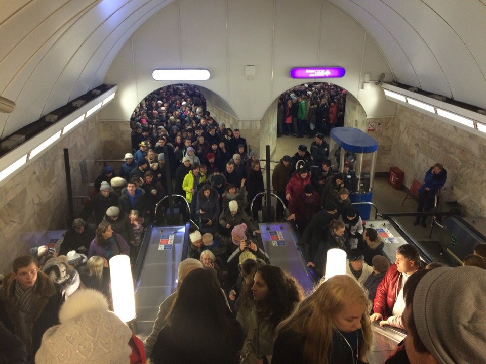 Напоминает аналогичную толпу при встрече Нового 2012 года. Как тут ещё эскалаторы не остановились