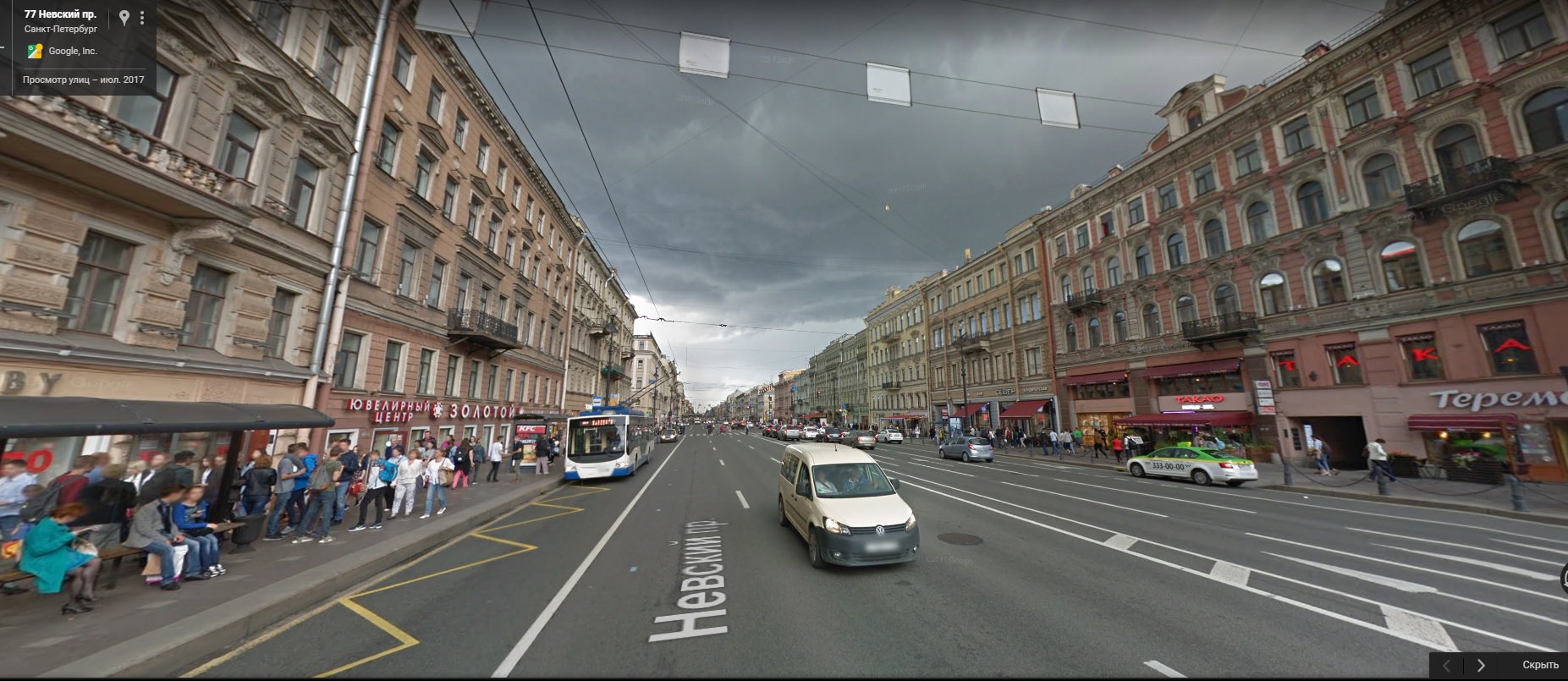 В соц сети найдено фото установки КС перед открытием движения в Петербурге. Минут 15 смотрел все перекрёстки Невского пр. на Гугл мапс. Не могу понять, где это место. У кого какие идеи?