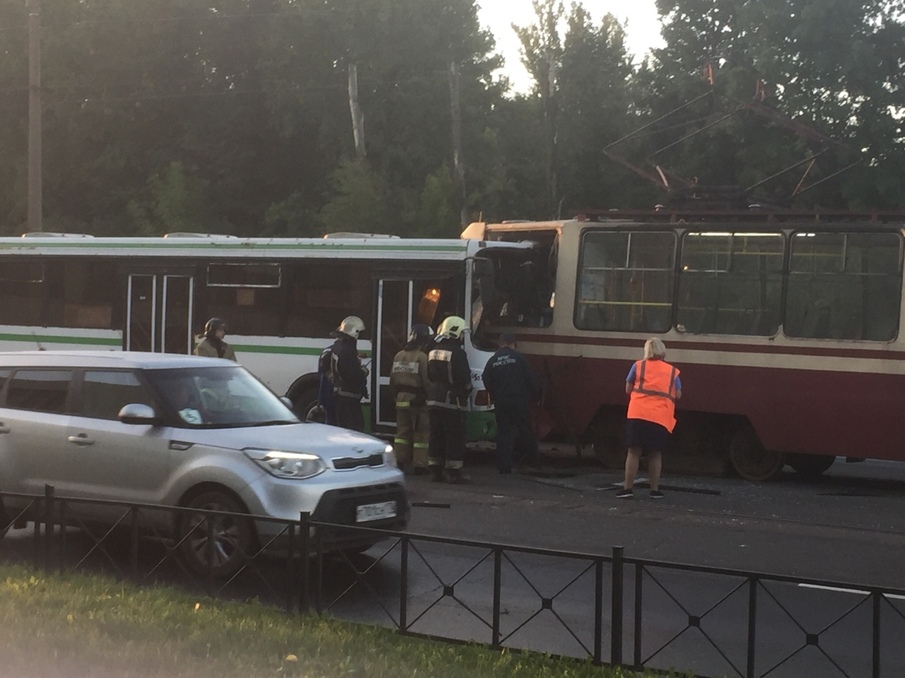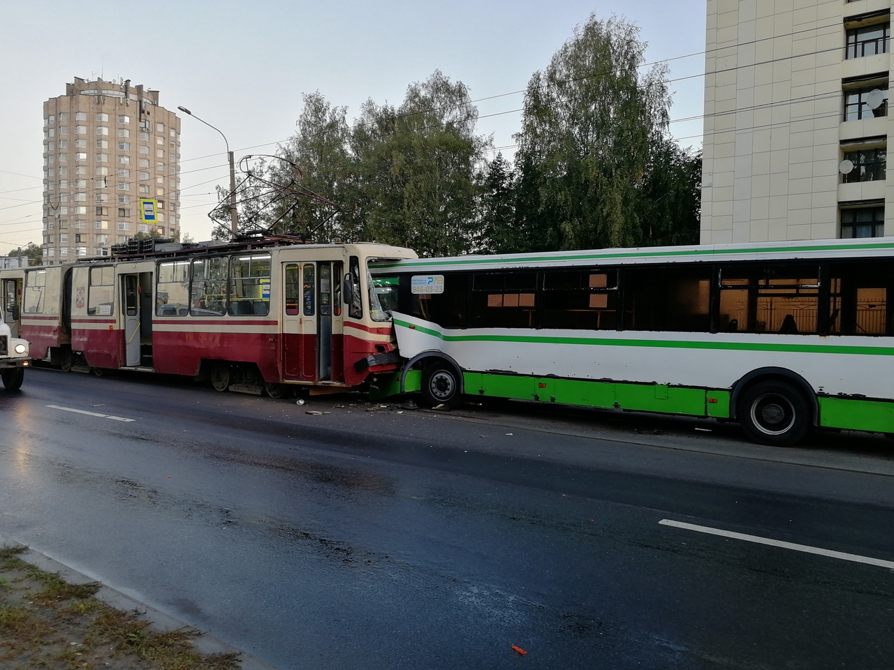 ДТП. Автобус вошёл в трамвай. Водитель трамвая жива. Успела выбежать из вагона (так написано в ДТП/ЧП).