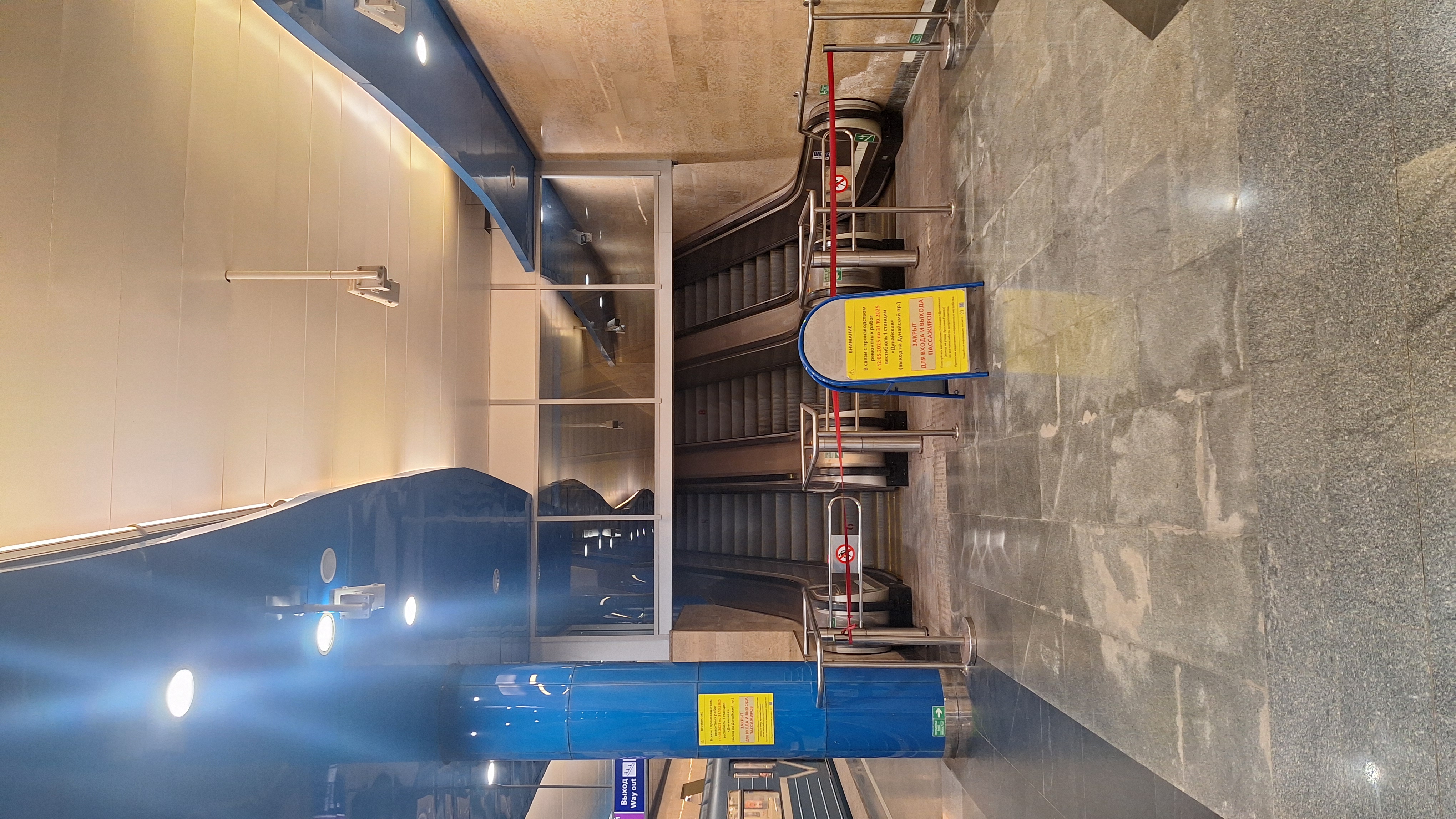 Это получается, что людей заставляют ходить в обход дальше только из за дурацких панно над эскалаторами, ведь противодымные заслонки давно готовы.