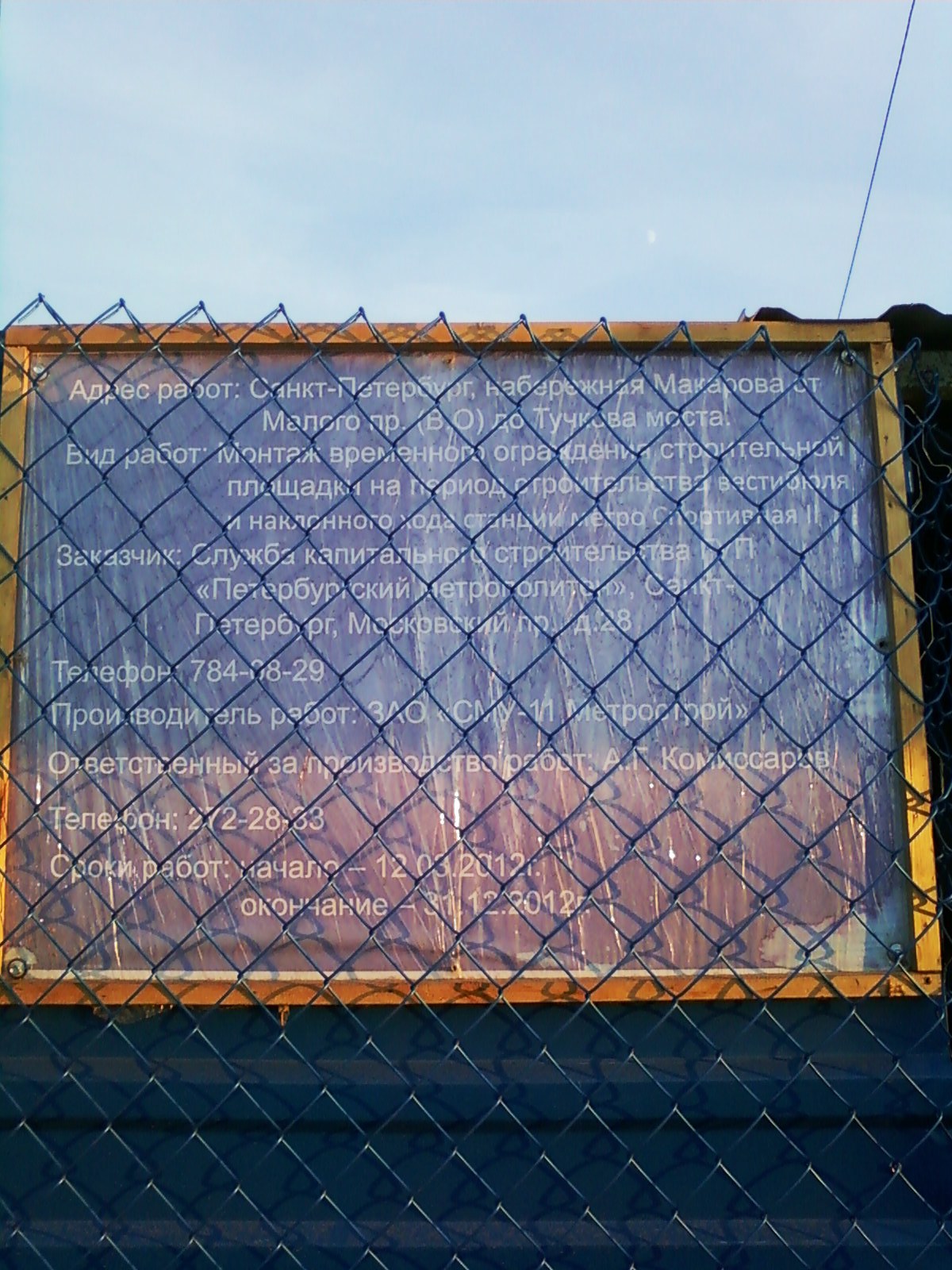 Информационный стенд со стороны Тучкова моста. Сроком окончания работ значится 31 декабря 2012 г.