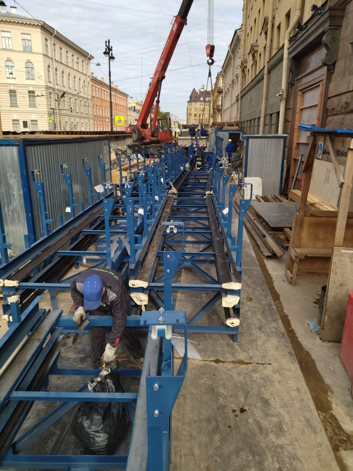 16.10.2021 - Продолжаются монтажные работы на станции «Технологический институт 1» Петербургского метрополитена. Работники ЗАО «Эс-сервис» установили балки ПТО машинного помещения. Также продолжаются работы по выверке зон эскалаторов.