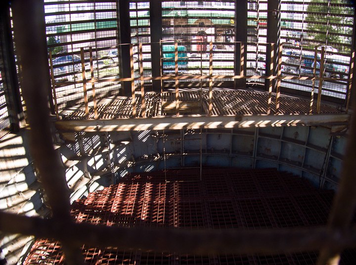 Не видел таких, кроме тех, где металлоконструкции развалились от старости и коррозии.