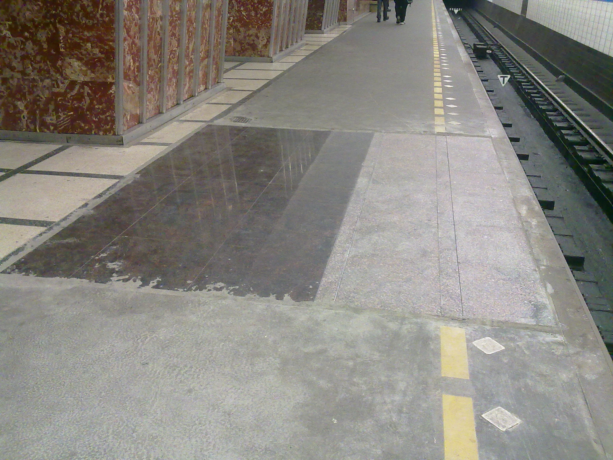 В путевом станционном туннеле в сторону центра, в середине платформы начали менять асфальт на гранит. Цвет приблизительно коричневый. Фотки нет и насчет пути в сторону Купчино не знаю.