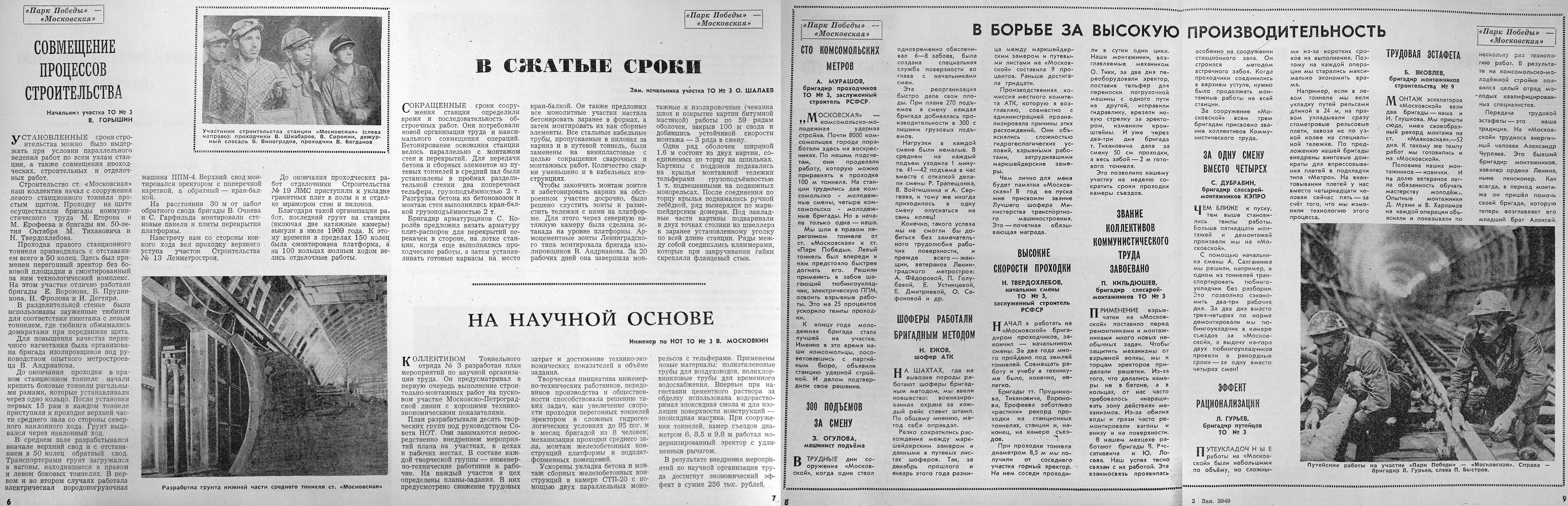 Блок статей, посвящённый открытию станции «Московская». 1969 год.