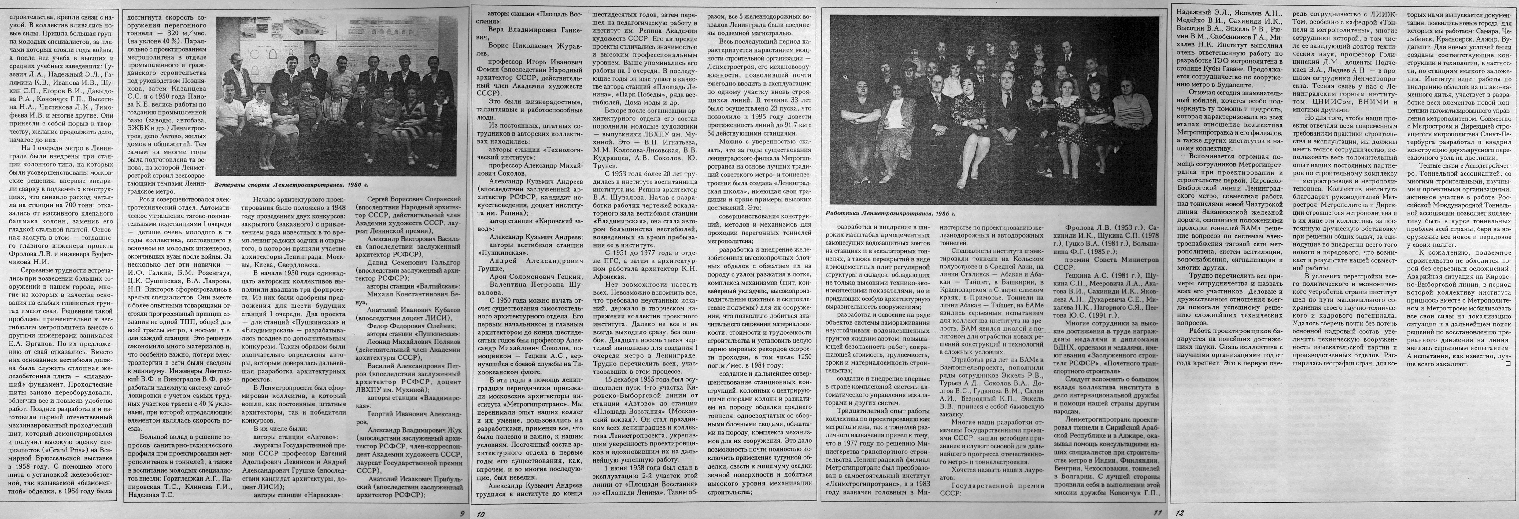 Статья с «отчётными» таблицами к 50-летию института «Ленметрогипротранс».