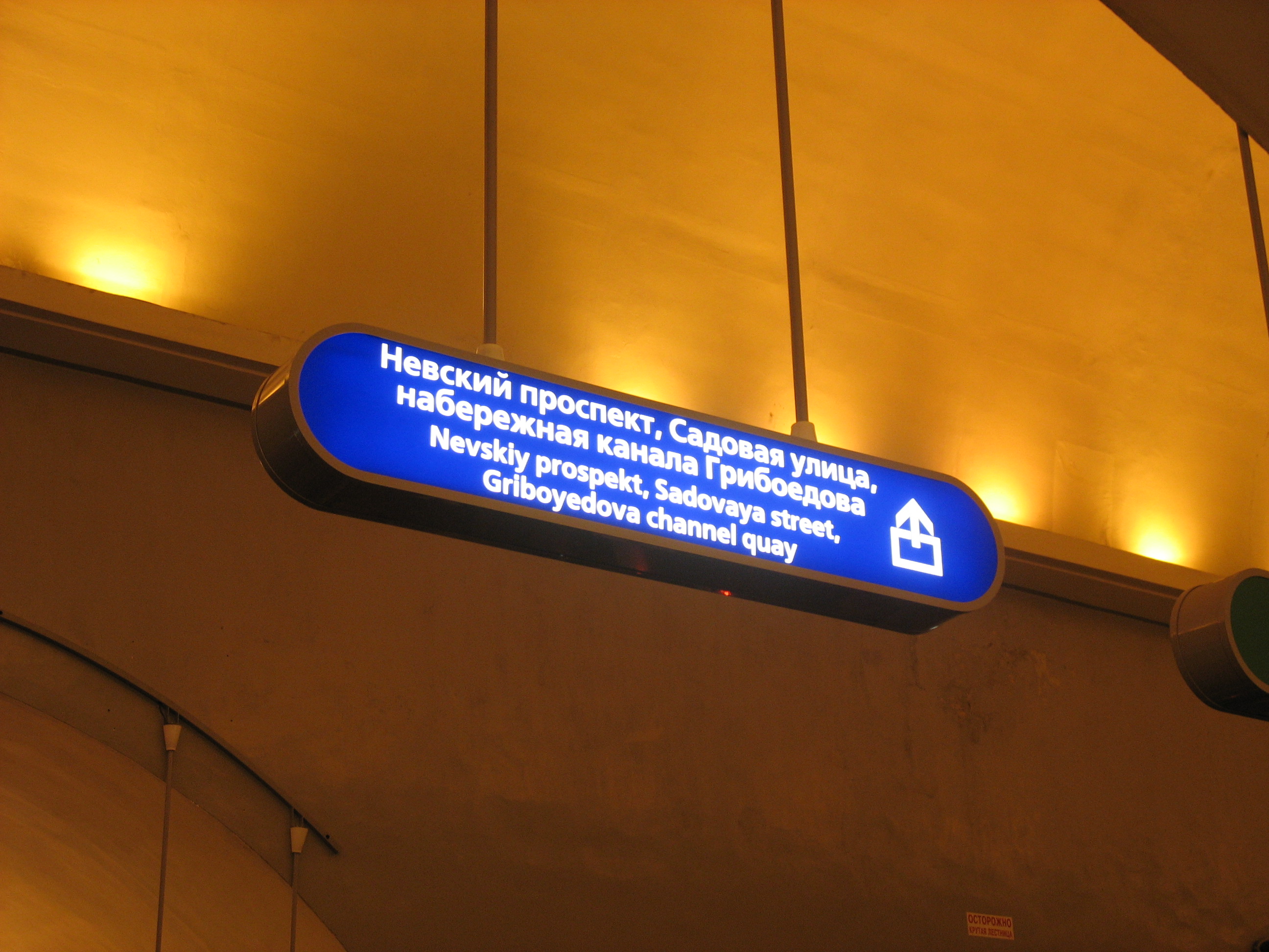 Да,это указатель посередине. Только они там ничего не дорабатывали, на этом месте раньше никакой информации не было. Наконец-то хоть в одном месте сразу видно куда идти. Вот эти way out лучше бы названиями улиц куда этот way out осуществляется заменили бы. Вот почему-то на Волковской указана на какую улицу выход идёт...