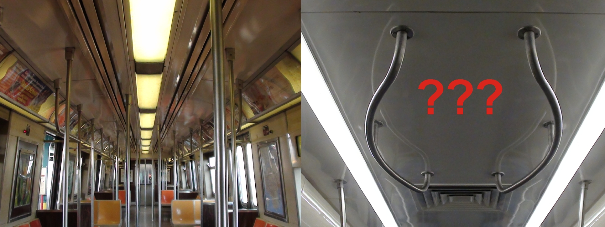 3. Ну и на последок, поручни. Помимо сидушек, вагон сильно расширят поручни в нужных местах. Имеет смысл ставить по середине вагона. В этом случае, народ распределится по всему вагону, т.к. люди любого возраста смогут держаться в любой точке вагона. В Яузах есть какое-то недоразумение вверху. До них могут дотянуться только те, у кого рост 190см и более. Это не большинство. Для чего так высоко поручни??? При просмотре верхних поручней вблизи (подойдя к ним) можно обнаружить пыль. Пыль останется и на руке, если за них взяться, что свидетельствует о том, что ими практиески не пользуются. Даже "ушек" нету, чтобы хотя бы кто-то смог тогда воспользоваться ими.