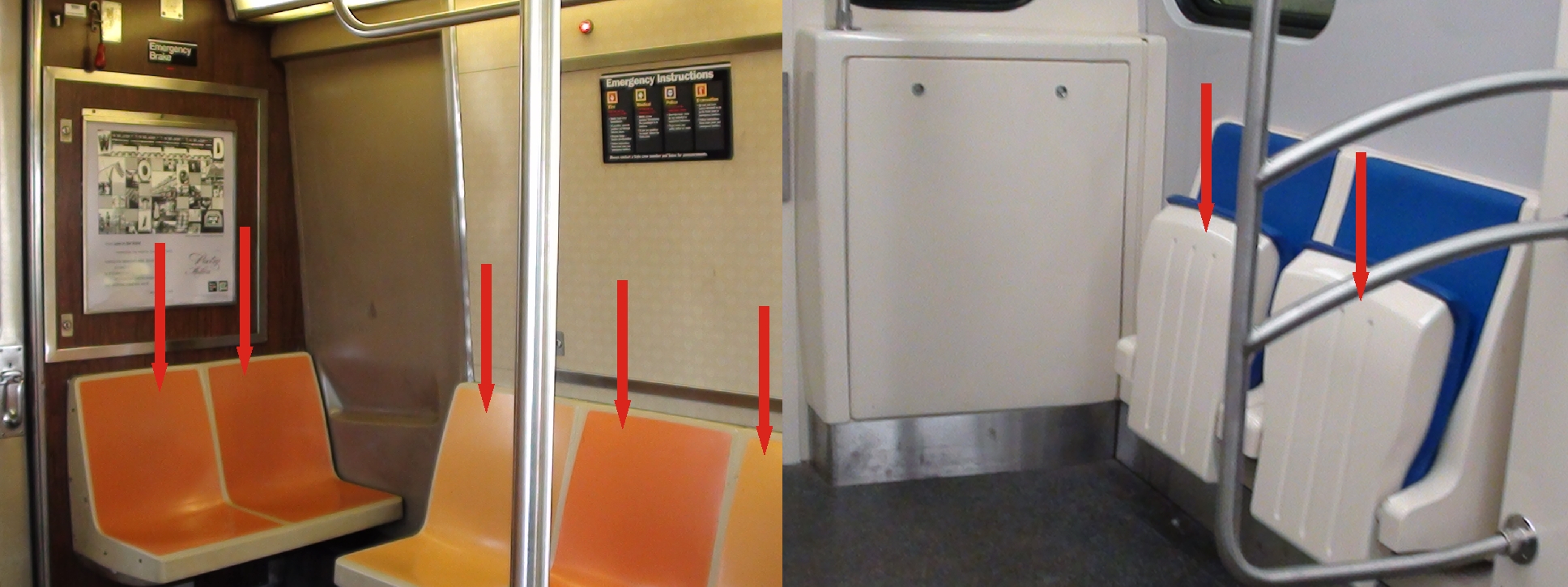2. Помимо центральных сидушек имеет место и боковые. В R46 их 5 (!!!) в каждом углу. В Яузах-Охтах всего 2 и те складные...