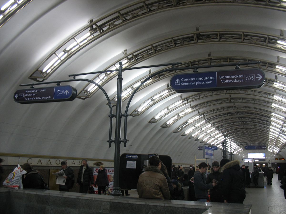 Вызывает недоумение полное отсутствие информации о выходе на Садовую улицу и Сенную площадь (судя по последнему фото их вообще не существует).