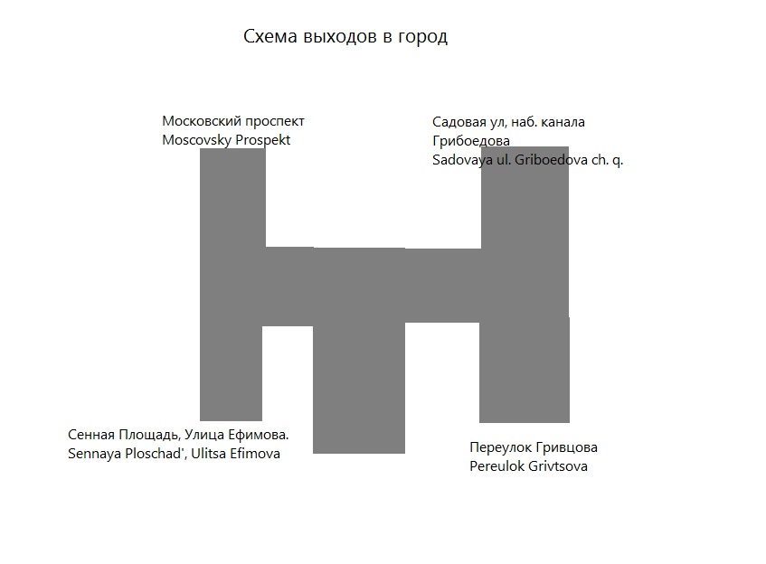 -Выход на Сенную площадь, Садовую улицу и пер. Гривцова, к наб. канала Грибоедова