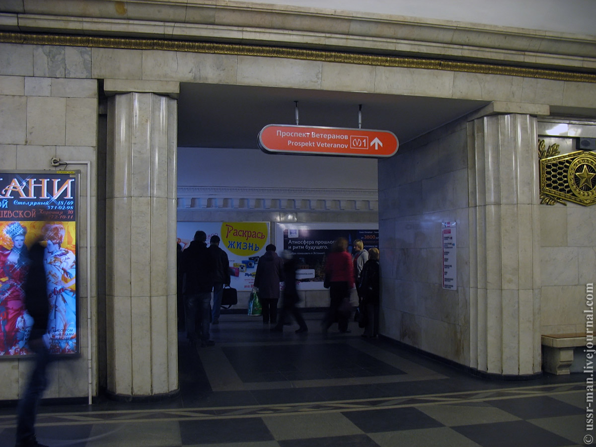 Кстати, по поводу редкого расположения названия мы, вроде как, несколько поспешили. По крайней мере, на пути в строну Ветеранов всё, как у всех - тот же интервал - в окна более-менее вписываются. Наверное, и по другой стороне то же самое. Просто показалось.