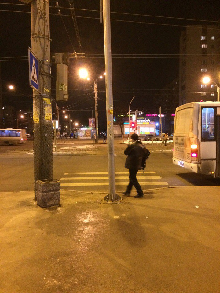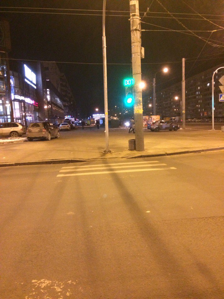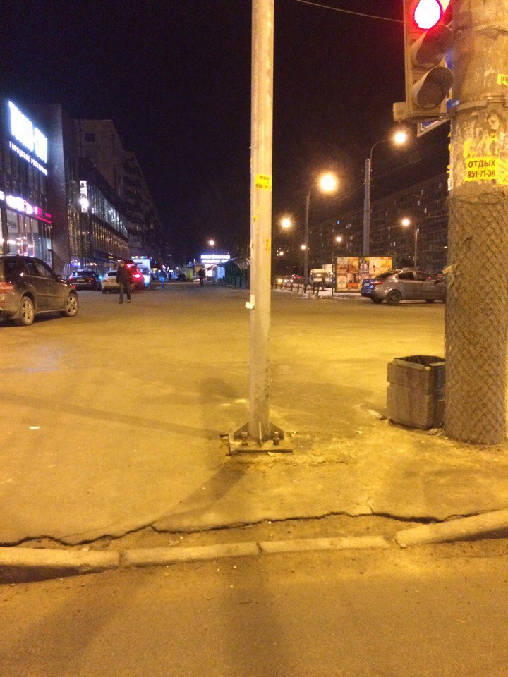 На перекрестке Художников и Просвещения места для опоры освещения или просто столба не нашлось нигде, как кроме посередине пешеходого перехода :crazy: