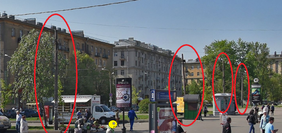 2. А у метро на 4 столба провод не кинуть, видимо. Старые фонари сняли, а новые нее повесили. Теперь ещё и от столбов открещиваются.