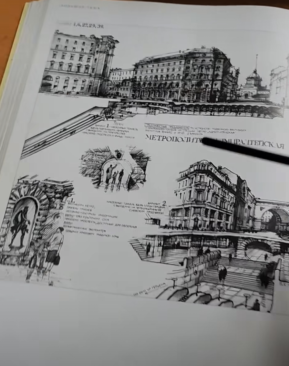 Архитектурное оформление Адмиралтейской было утверждено в 1997 году. В Сети (и непосредственно на форуме) лежит немало эскизов, схем и даже один макет, которые можно разделить на новые реализованные (цифровые) и старые (нарисованные вручную). Вот насчёт старых я и хочу кое-что разузнать