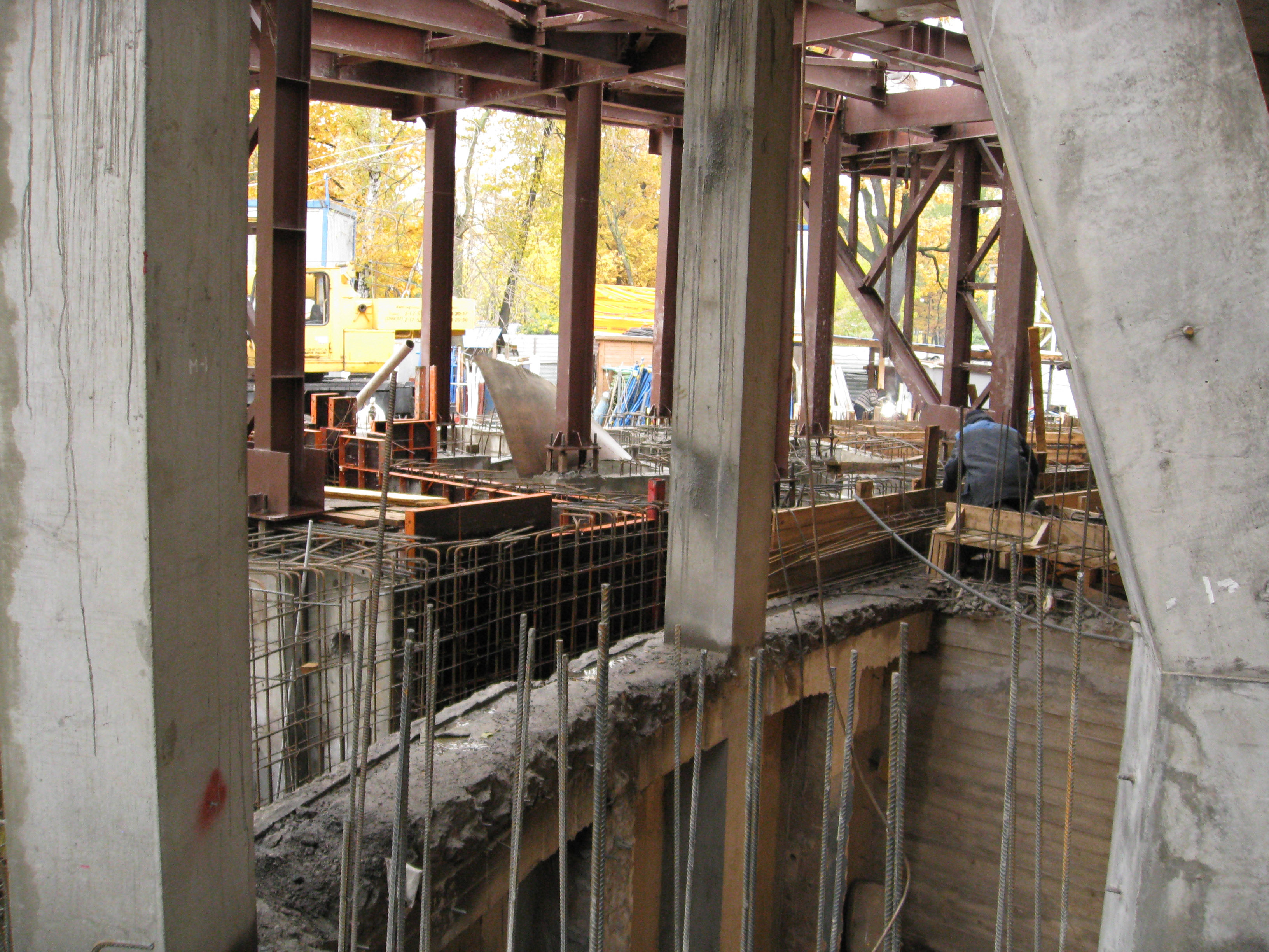 Побывал на строительстве вестибюля! Внутри: второй этаж уже практически готов в конструкциях, укладывают перекрытия для будущих кассовых помещений, установили направляющие для турникетов, скоро начнется отделка; снаружи: заливают перекрытия под пешеходную зону и технические помещения, установили ступеньки и занимаются утеплением купола! Внутри вестибюль стал намного больше, там стало как то слишком свободно!