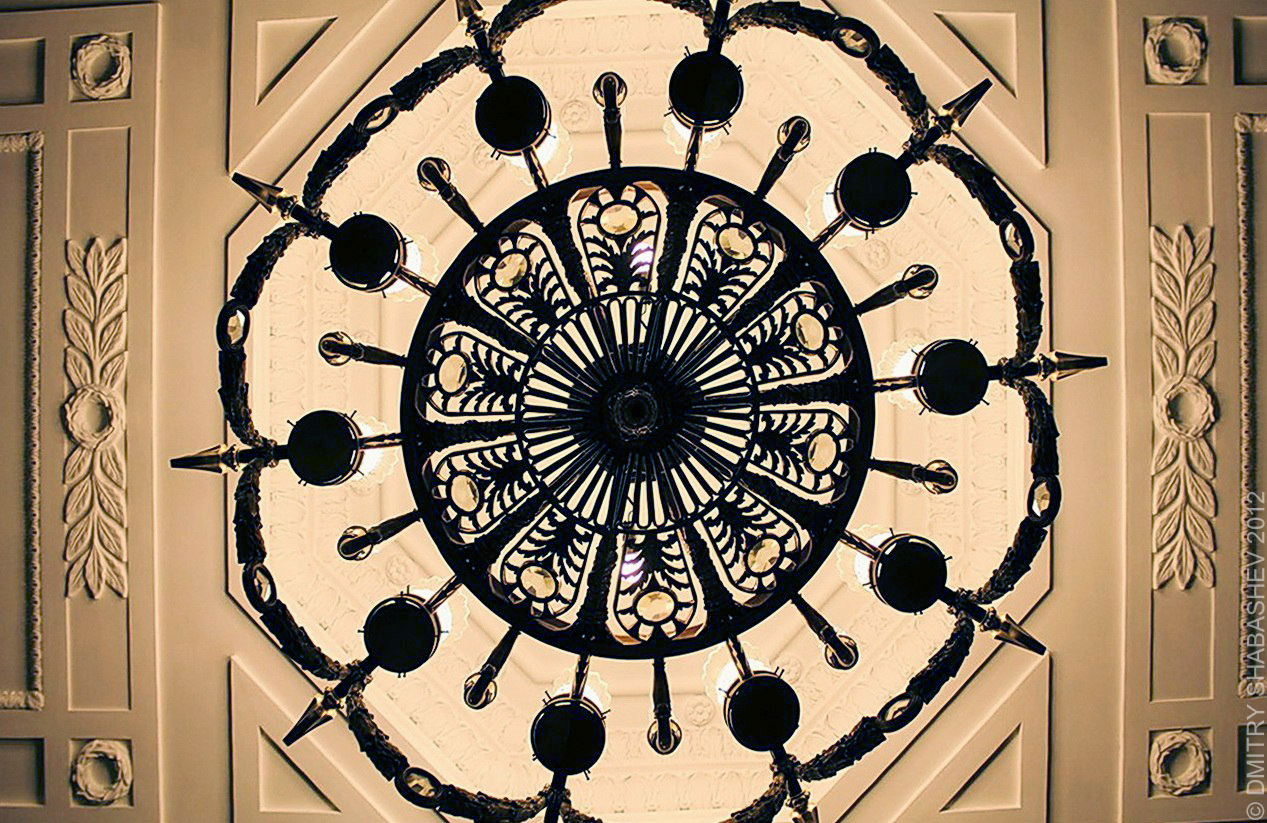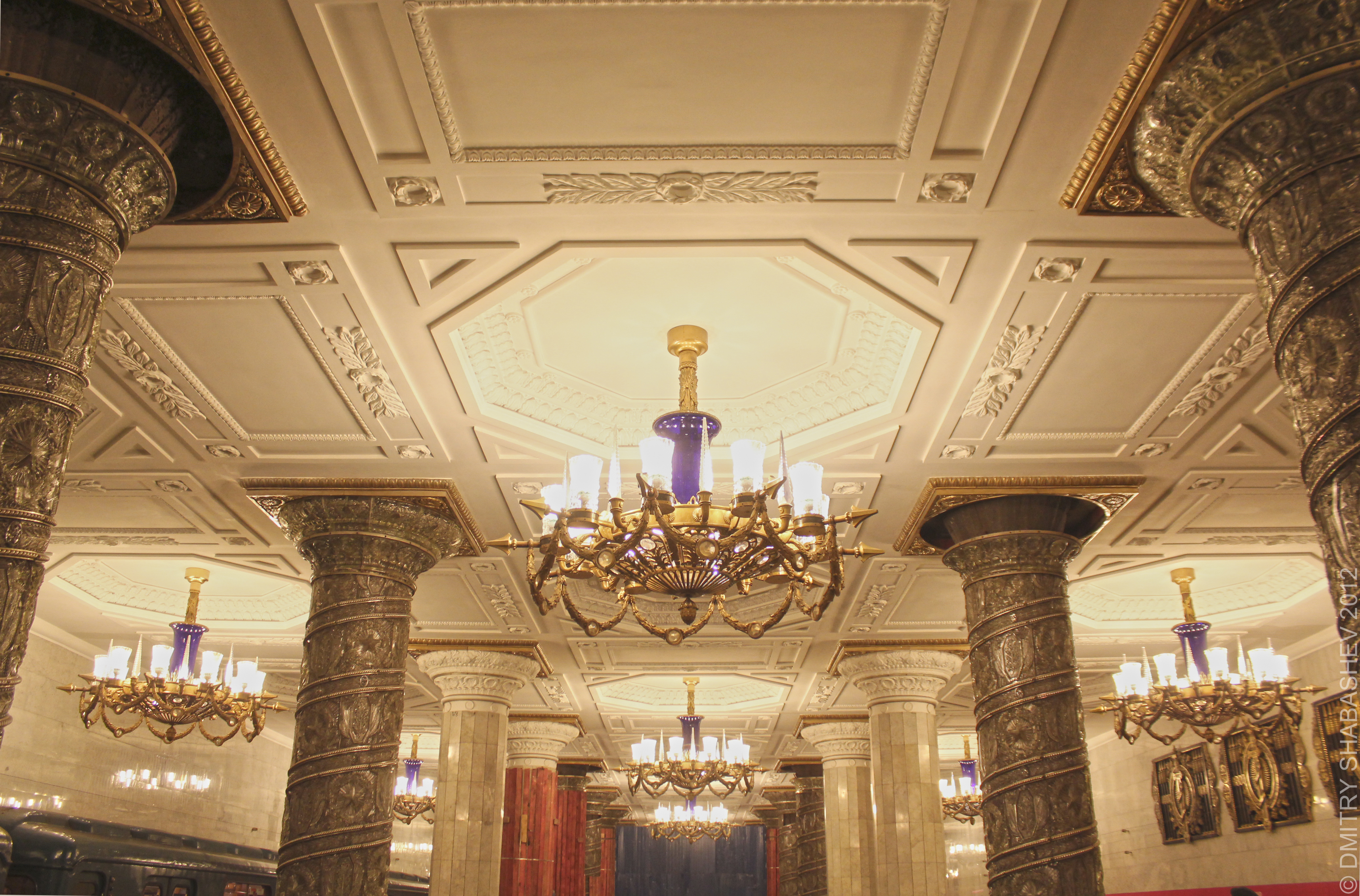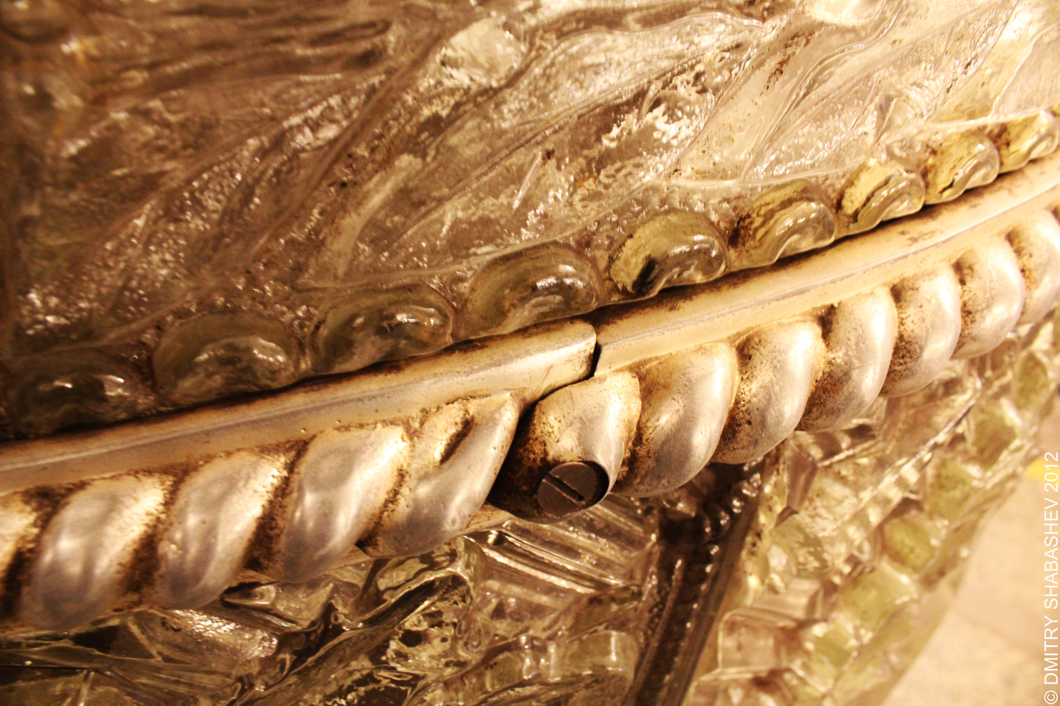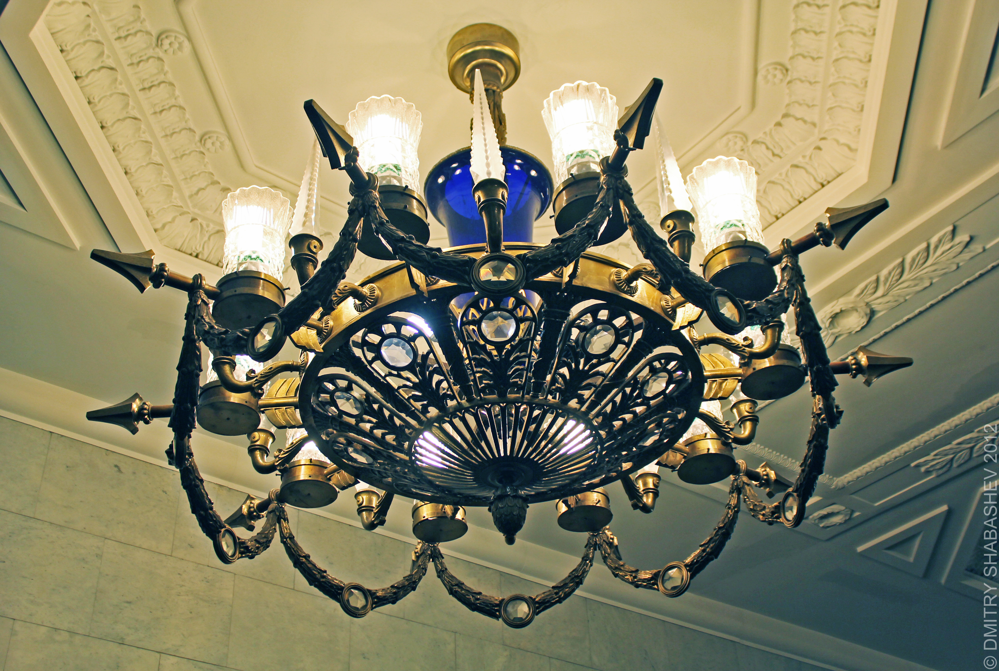 Ну, не такие уж они и компактные - их высота почти что равна высоте плафонов. В плафонах люстр, которые расположены ближе к панно, ставят аналогичные, заменяя ими действительно компактные люминесцентные лампы (их, впрочем, и сейчас можно увидеть в нескольких люстрах со снятыми плафонами).