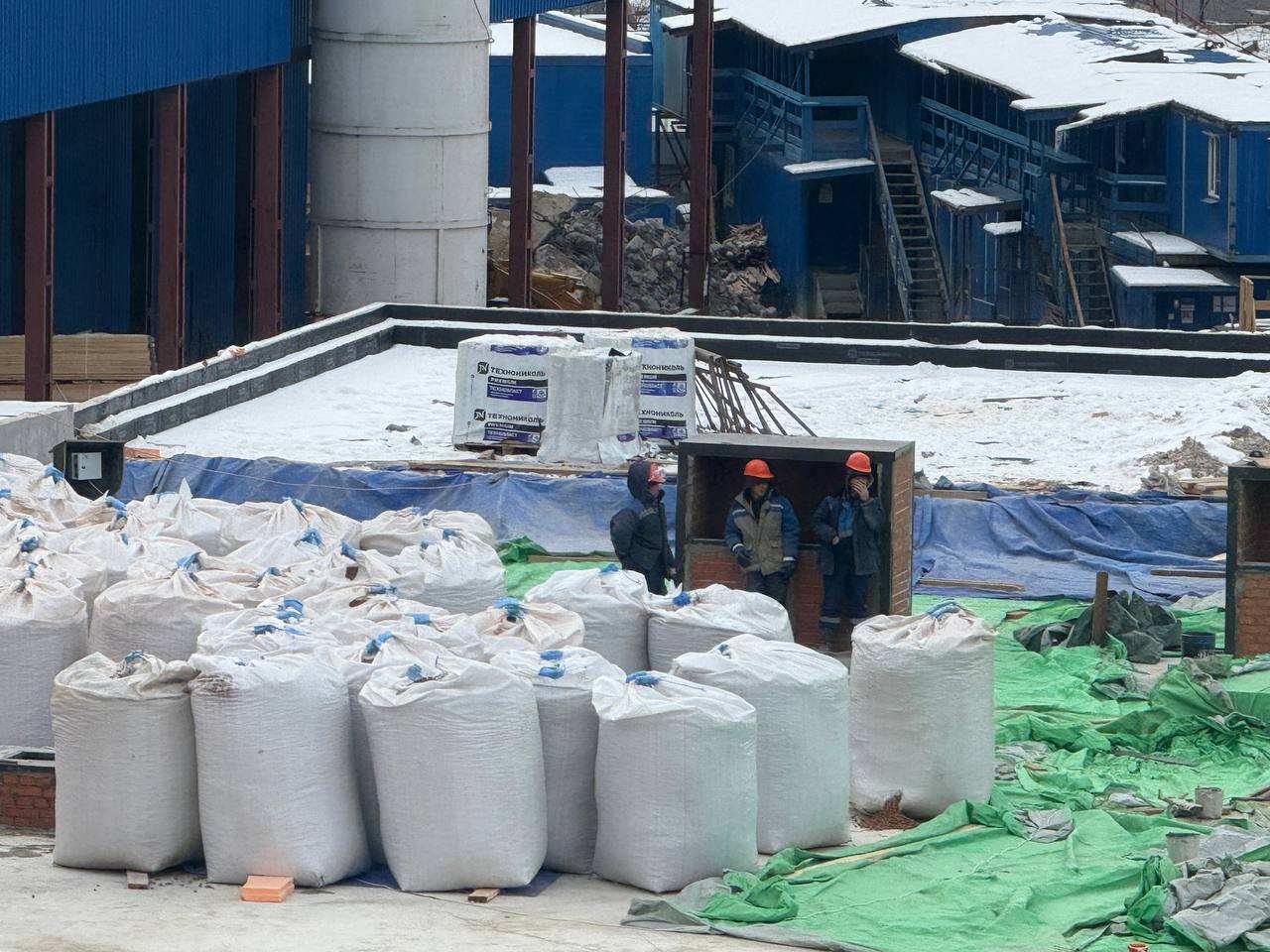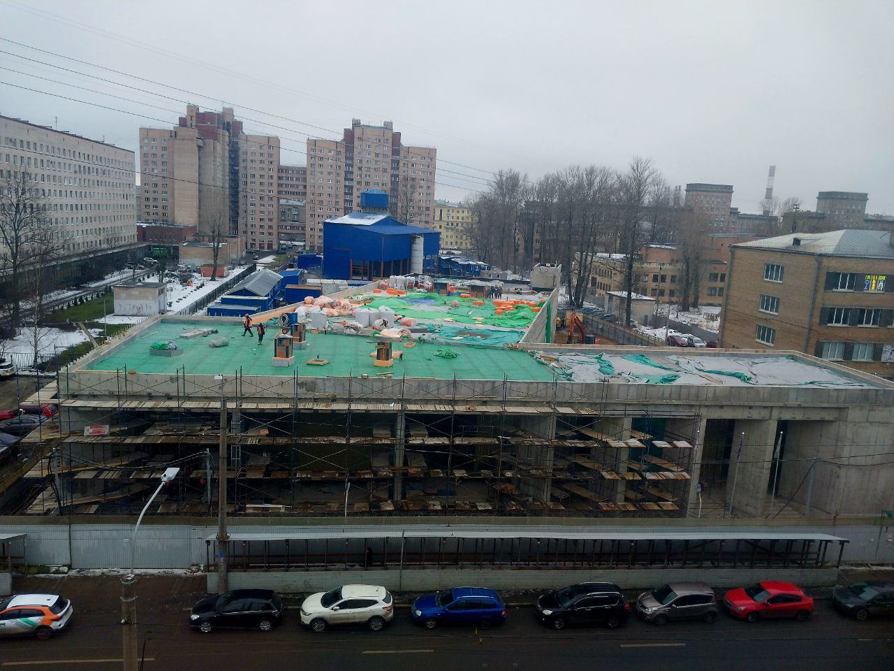 На недавно забетонированное перекрытие кассового зала и входной группы вестибюля укладывается полиэтиленовая плёнка, затем на неё размещаются плиты пеноплекса, сверху насыпается керамзит. По керамзиту выполняется армированная стяжка, после чего на неё наносится наплавляемая гидроизоляция.