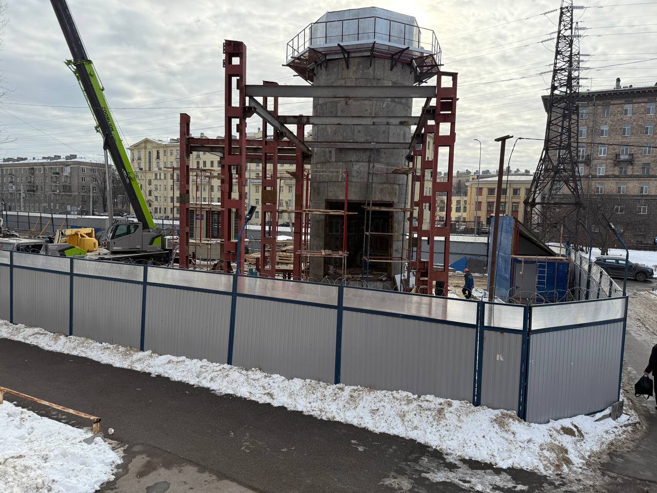 Продолжаются работы на строительной площадке шахтного ствола №5 Кировско-Выборгской линии Петербургского метрополитена.