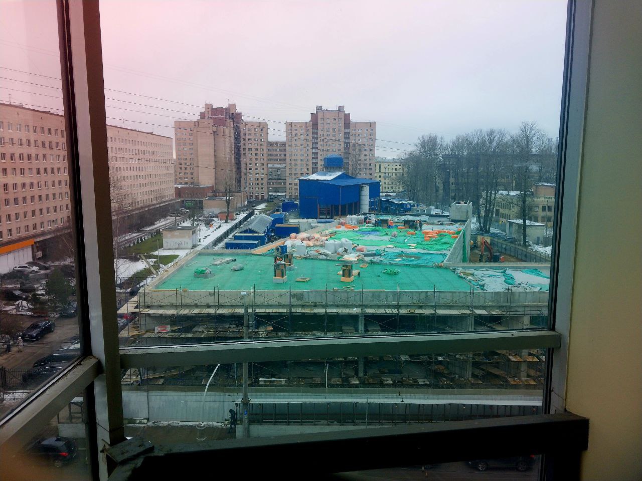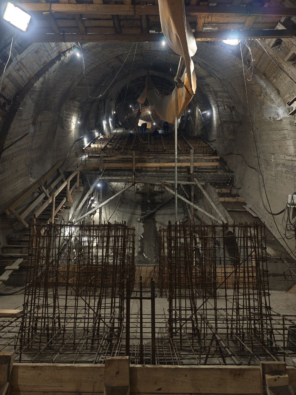 Сейчас здесь продолжается работа по устройству копра шахты. В дальнейшем весь комплекс, который здесь сооружается будем важной частью перехода между станциями «Кировский Завод» и «Путиловская».