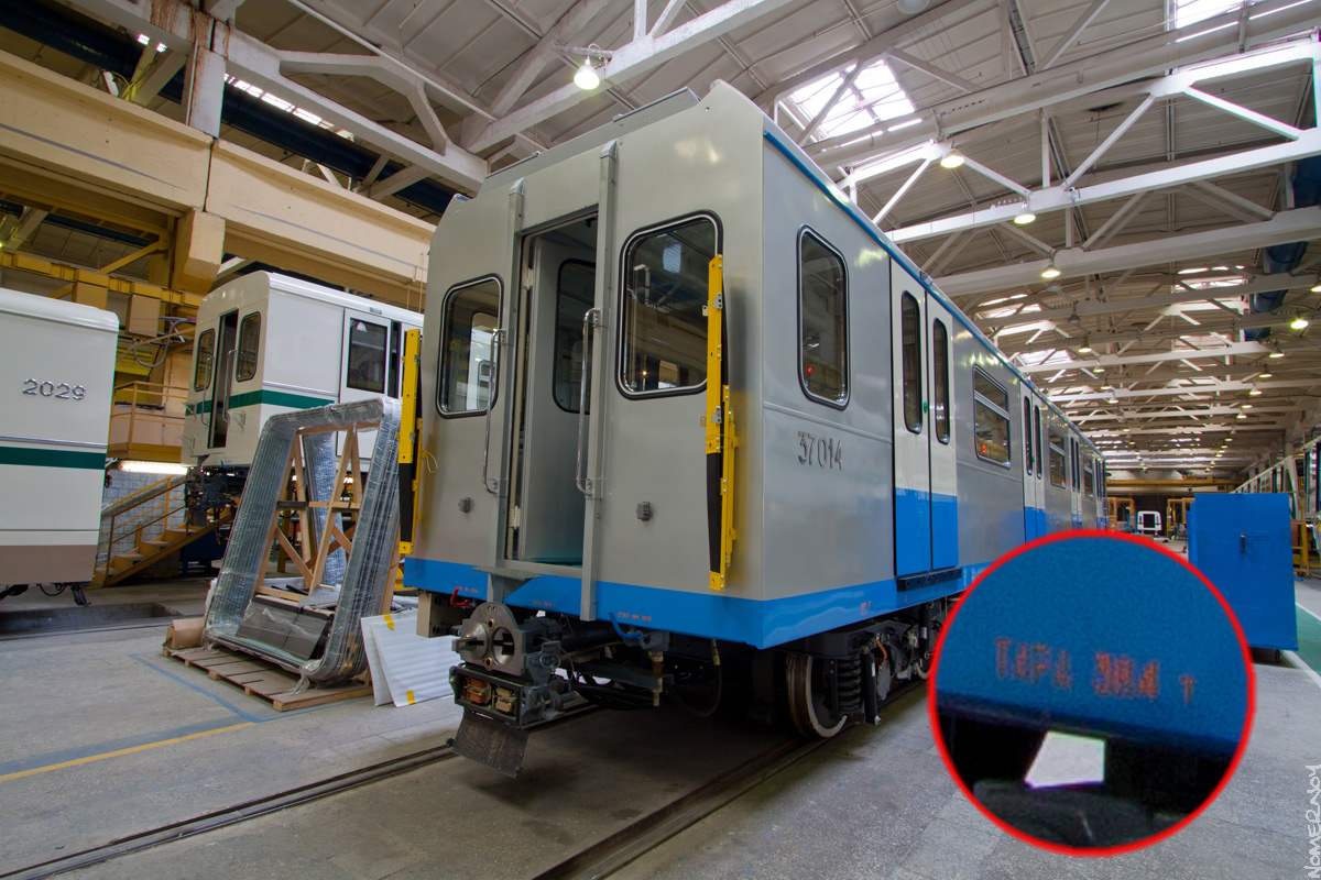 Дублирую для вас фотографию. Головной вагон модели 81-760 №37014, надпись нанесена на "холодном торце", снизу под торцевой дверью. На тверских кузовах действительно не пишут, на ориджинал мытищинских, как видим, писали.