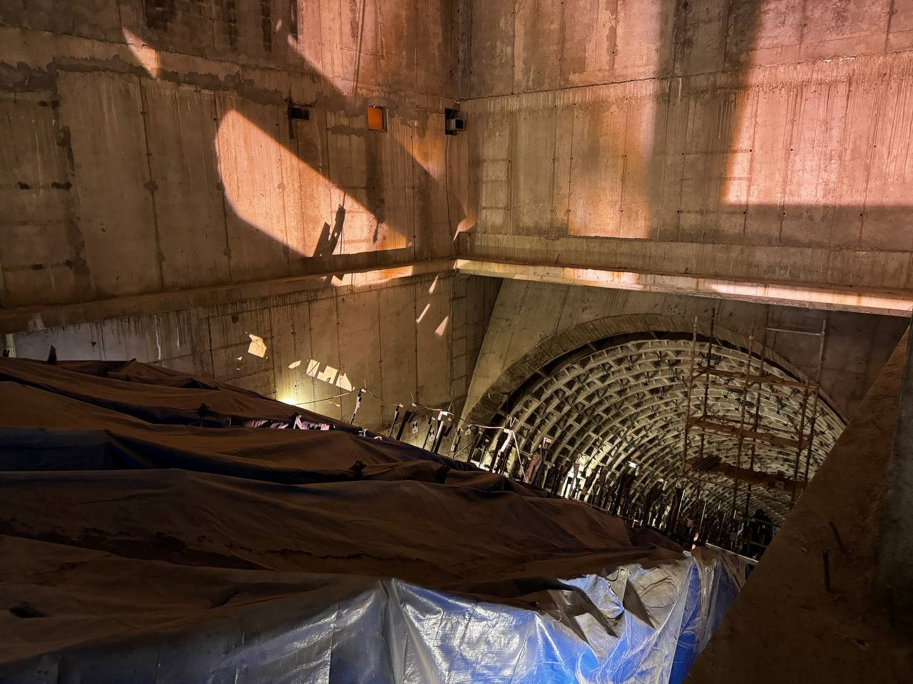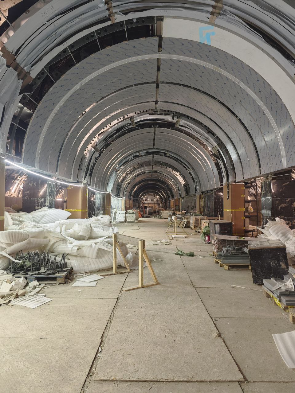 На строительстве Путиловской продолжается монтаж потолочного зонта в центральном зале.