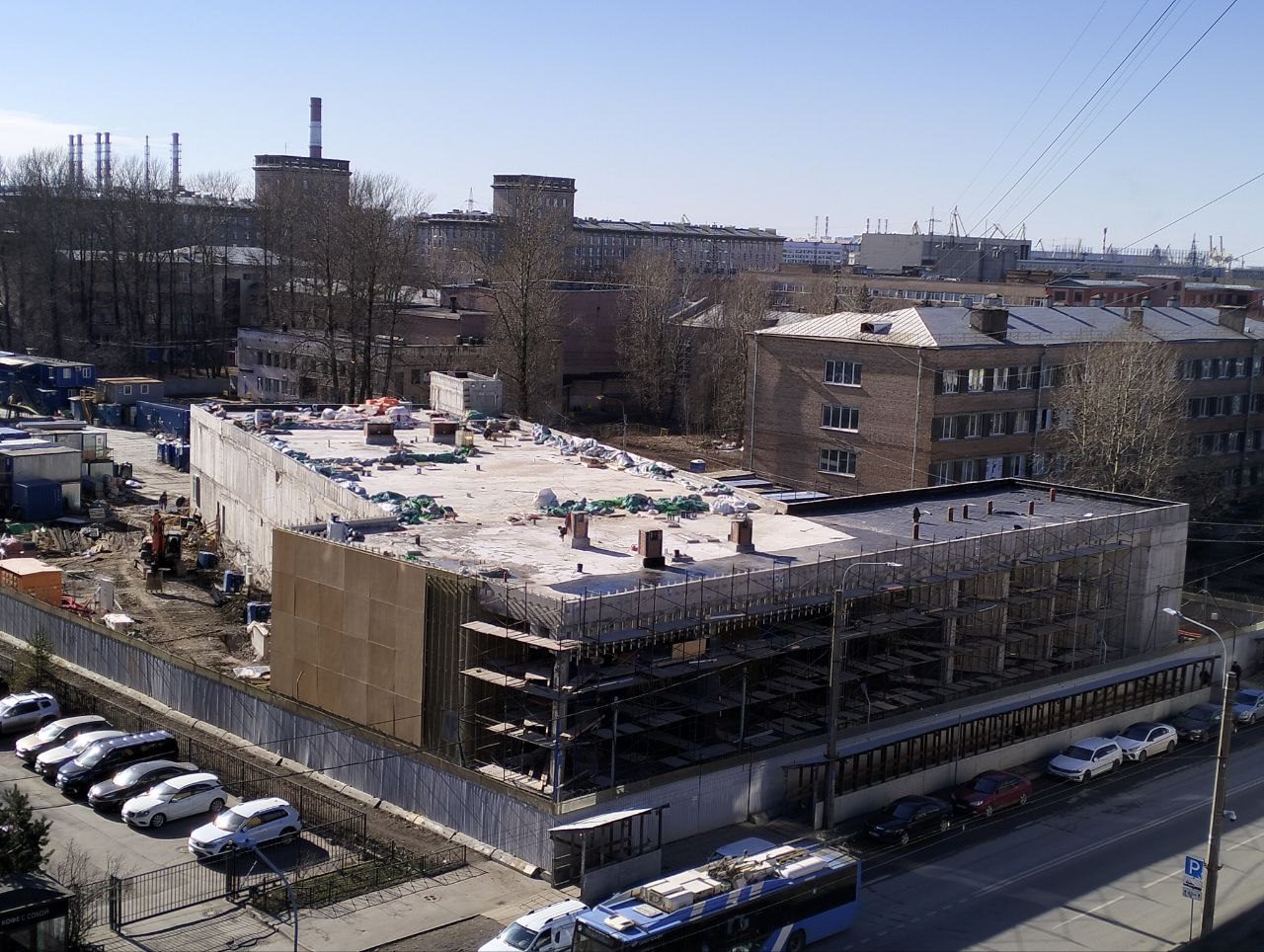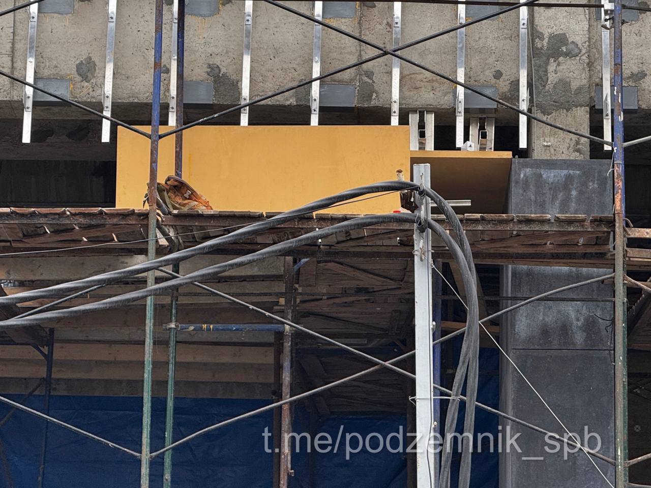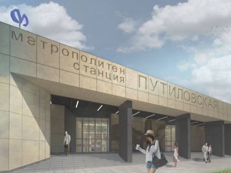 На строительстве вестибюля станции «Путиловская» Красносельско-Калининской линии Петербургского метрополитена продолжается отделка фасада вестибюля.