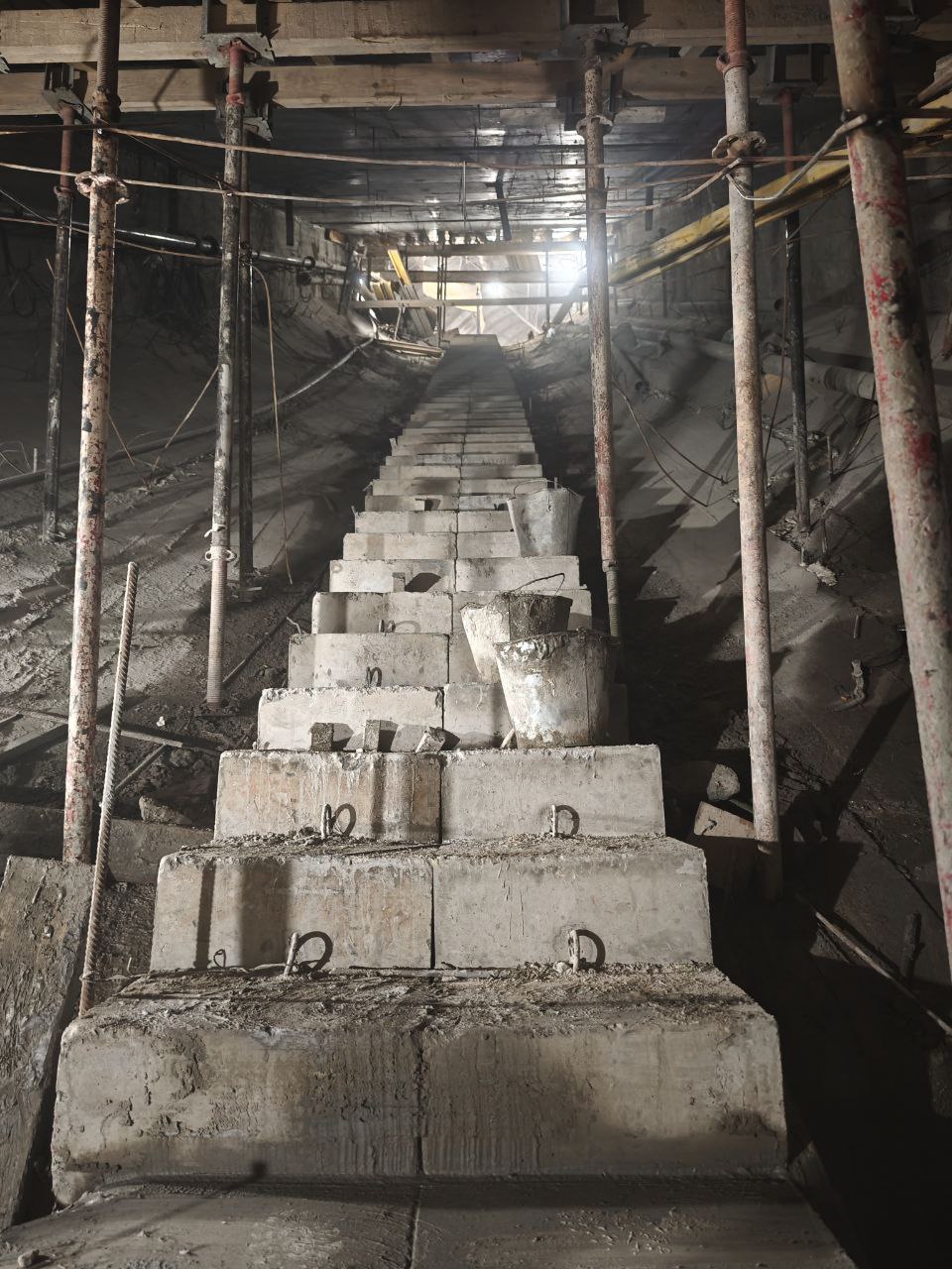 Строительство колонн для лестницы перехода на Кировском заводе.