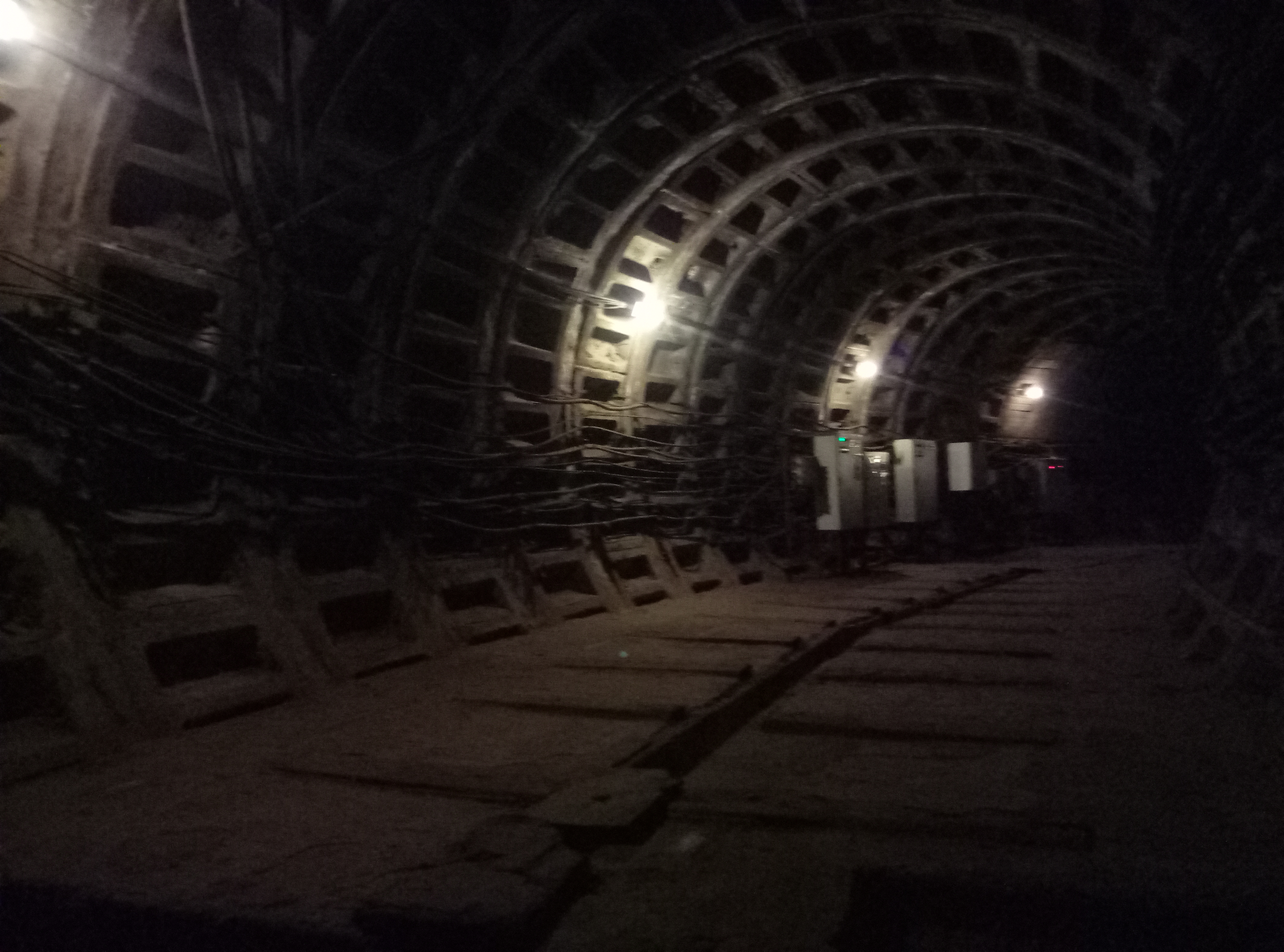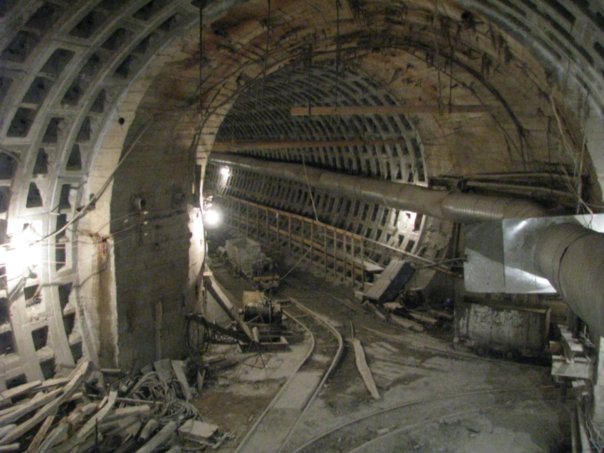 От ПТ-1 520-й шахты. Кстати, тоже был не маленький - около 600 метров в длину (только чуть меньшего диаметра, чем все остальные подходные тоннели, т.к. его строили коллекторным щитом диаметром 4.4 м).