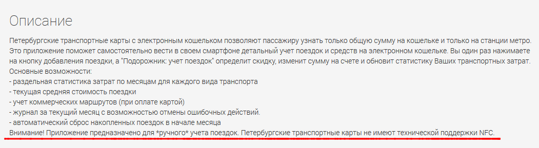 Vladimir91 писал(а):Жаль, что в настоящее время нет программы для отображения суммы на электронном кошельке, что для нашего "Подорожника", что для московской "Тройки". Есть только, например, прогр. "Билеты метро Москвы", которая отлично читает через NFC московские картонные билеты.