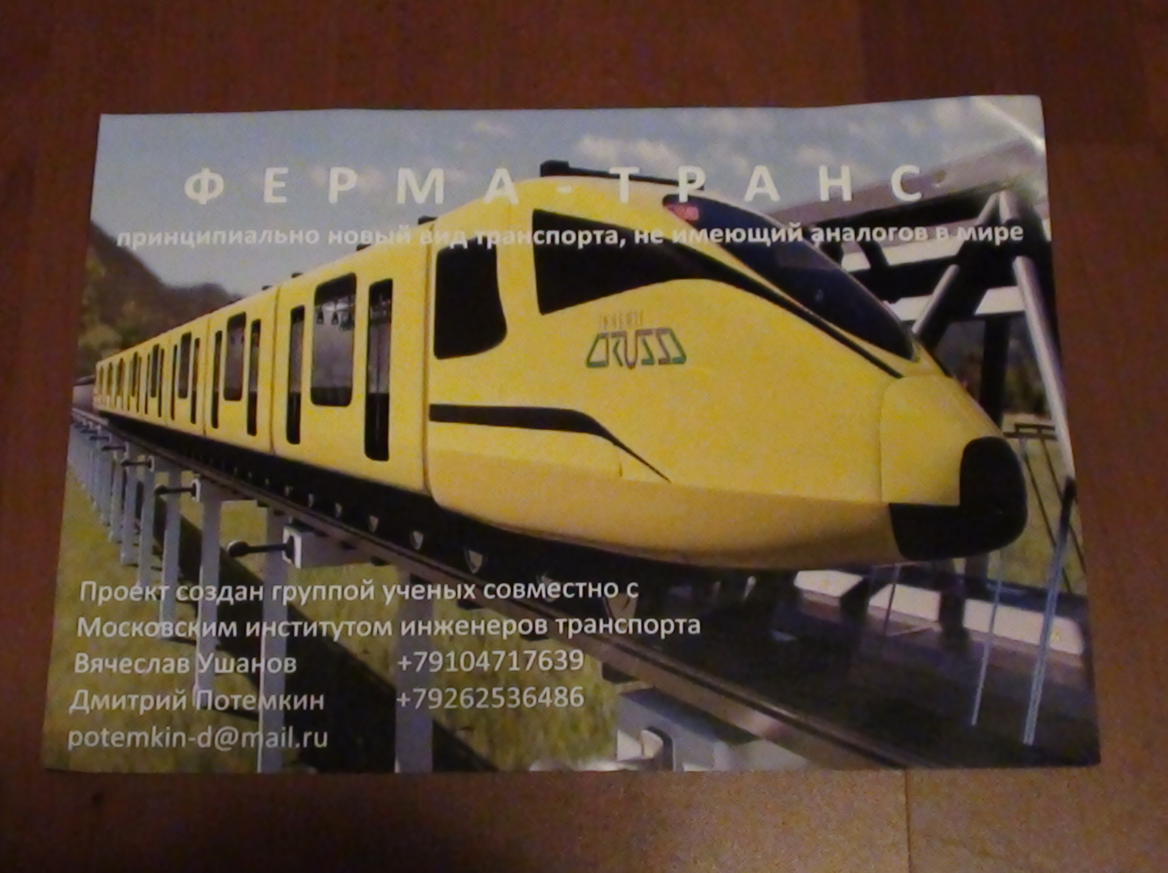 На выставке был проект "ферма-транс". Что-то вроде пиплмувера. Как сказал мужик, который у стенда стоял (учёный вроде :D ), что у проекта огромные преимущества тем, что на одной ферме располагается сразу два пути, и не надо строить второй путь. Второе преимещество - простота конструкции...