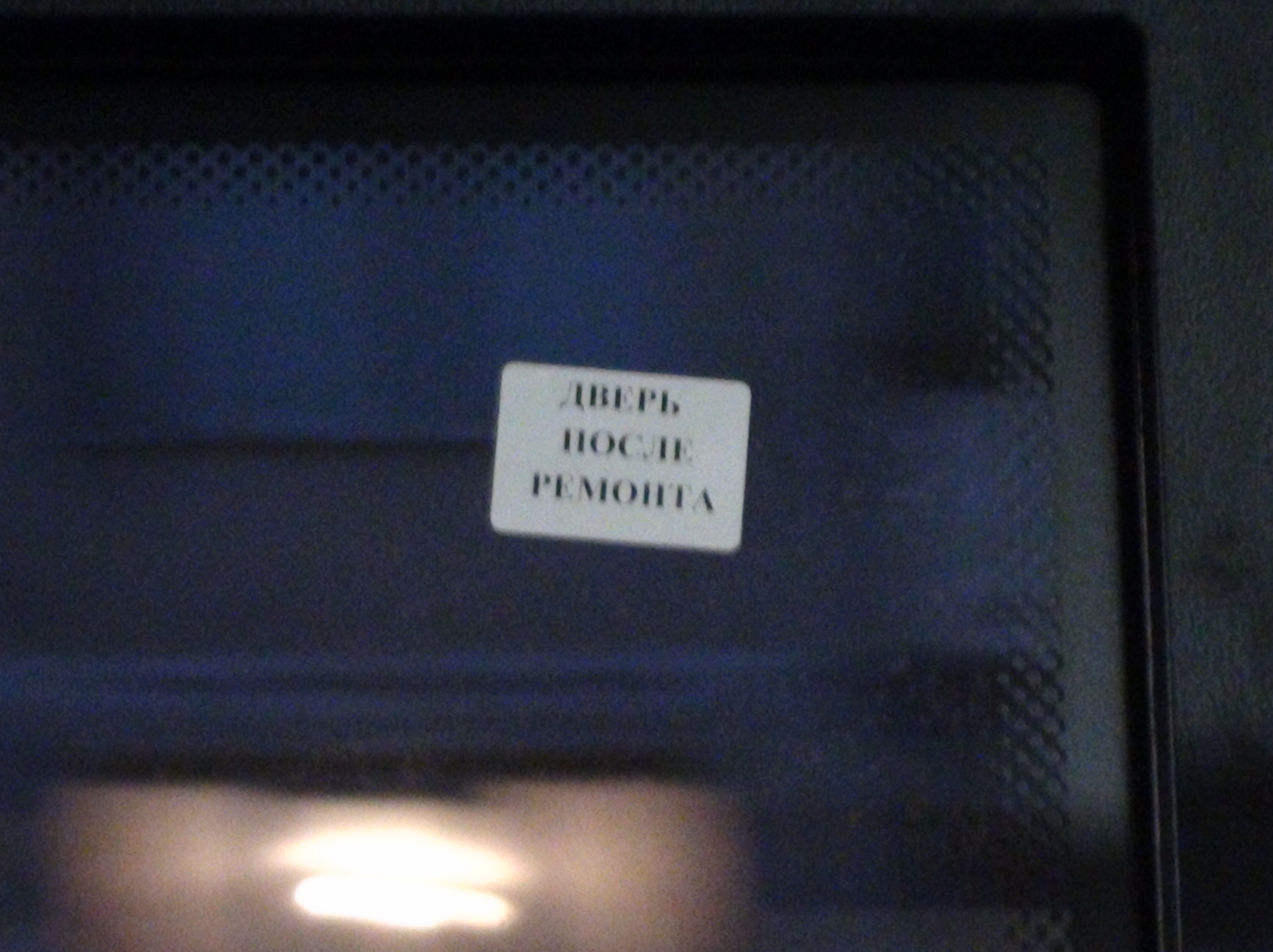 В парке наверно забыли отклеить. Подобные служебные надписи периодически попадаются в разном наземном ОТ. И ладно если наклейка, ведь зачастую просто маркером)) А тут может с завода отремонтированную дверь прислали, потому и цивильнее, наклеечкой)