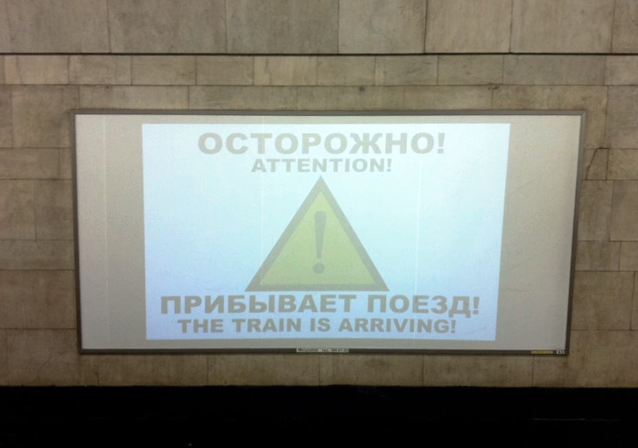 Проектор работает, так же как и раньше. Крутят ролик-поздравление с 1 сентября, а так же виды города. Перед выключением (секунд за 10) до прибытия поезда появляется картинка:
