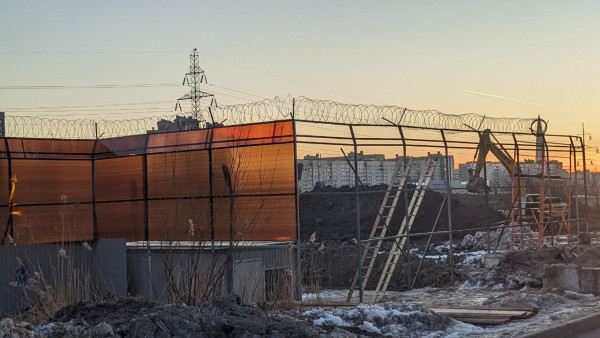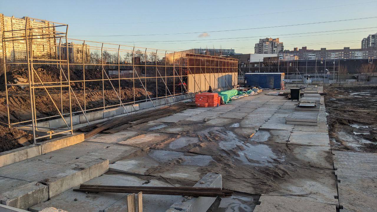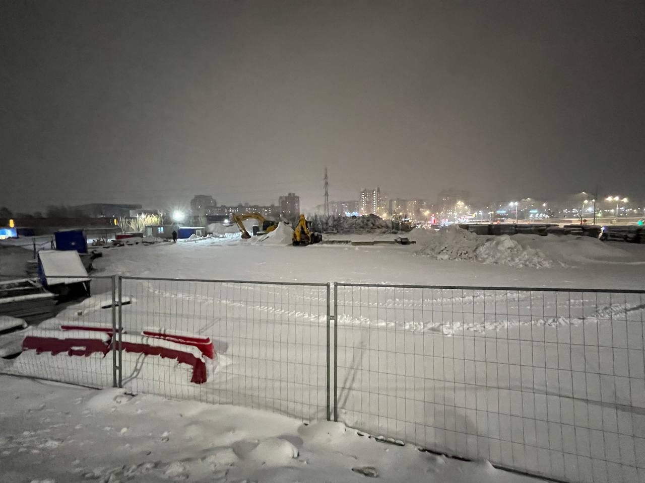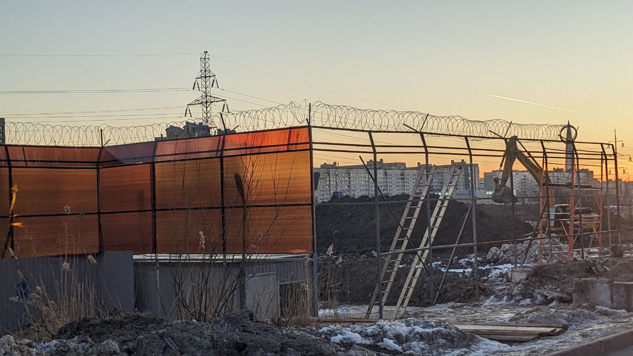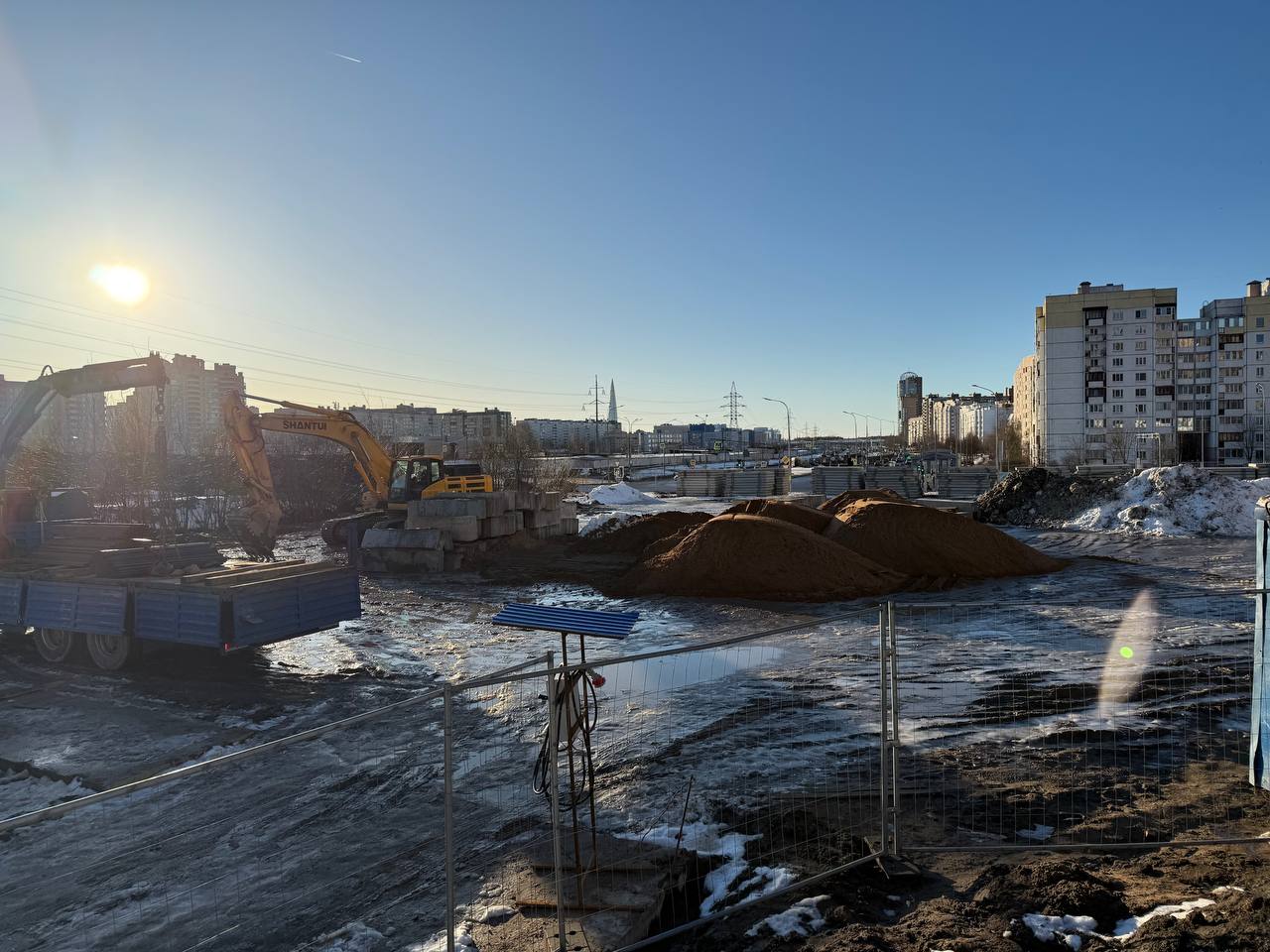 На месте первого участка строительной площадки продолжаются работы по выравниванию участка, укладываются дорожные плиты и устанавливается ограждение.