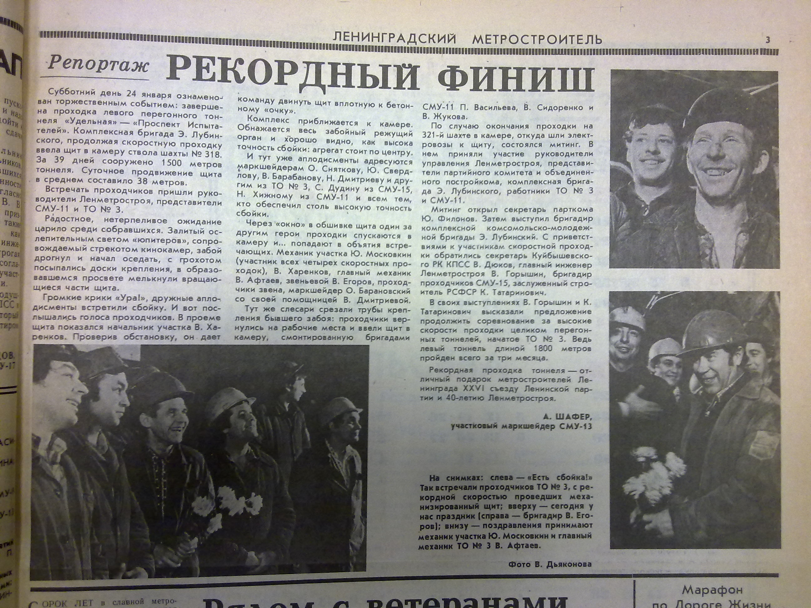 - написано, что "первая в мире проходка эскалаторного тоннеля с применением щита" была на станции "Адмиралтейская". Оставим за скобками весь остальной мир, но мы-то знаем, что первый наклон, построенный этим щитом, был на станции "Обводный канал".