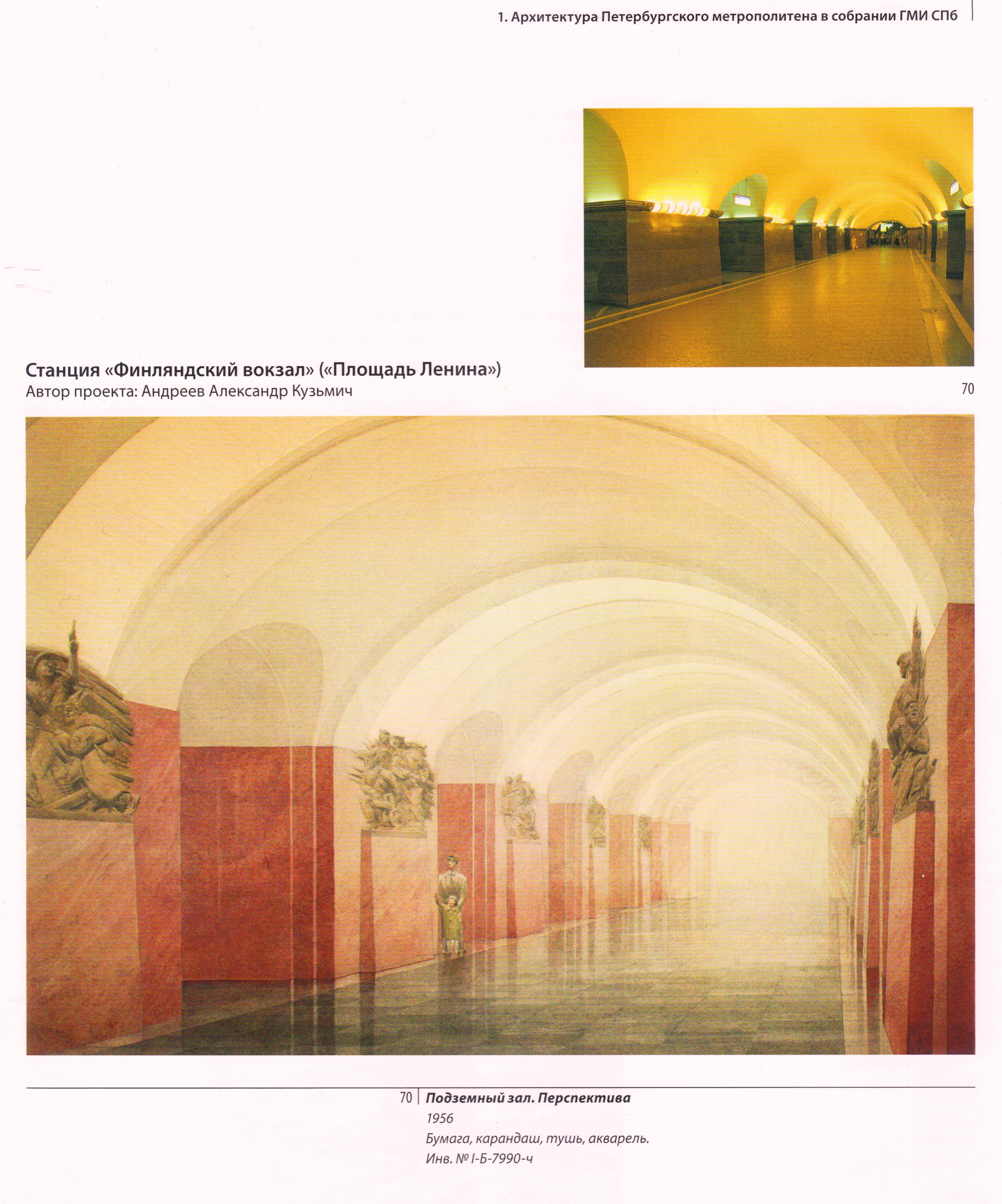 Ещё уникальный эскиз, к сожалению маленький, пришлось немного отреставрировать. Этот уникальный эскиз из книги "Архитектура и строительства Ленинграда" Сборник за 1947 год. В этом сборнике, так же есть три варианта станции Московская, станции Выборгская, а так же несколько вариантов Балтийской и Нарвской (Сталинской). Эти эскизы уникальны тем, что не опубликованы в открытом доступе. 1. Станция Витебская.