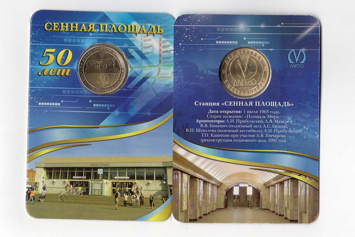 По сложившейся традиции Петербургский метрополитен выпускает юбилейные жетоны с изображением станций «Сенная площадь», «Невский проспект», «Горьковская» и «Петроградская».