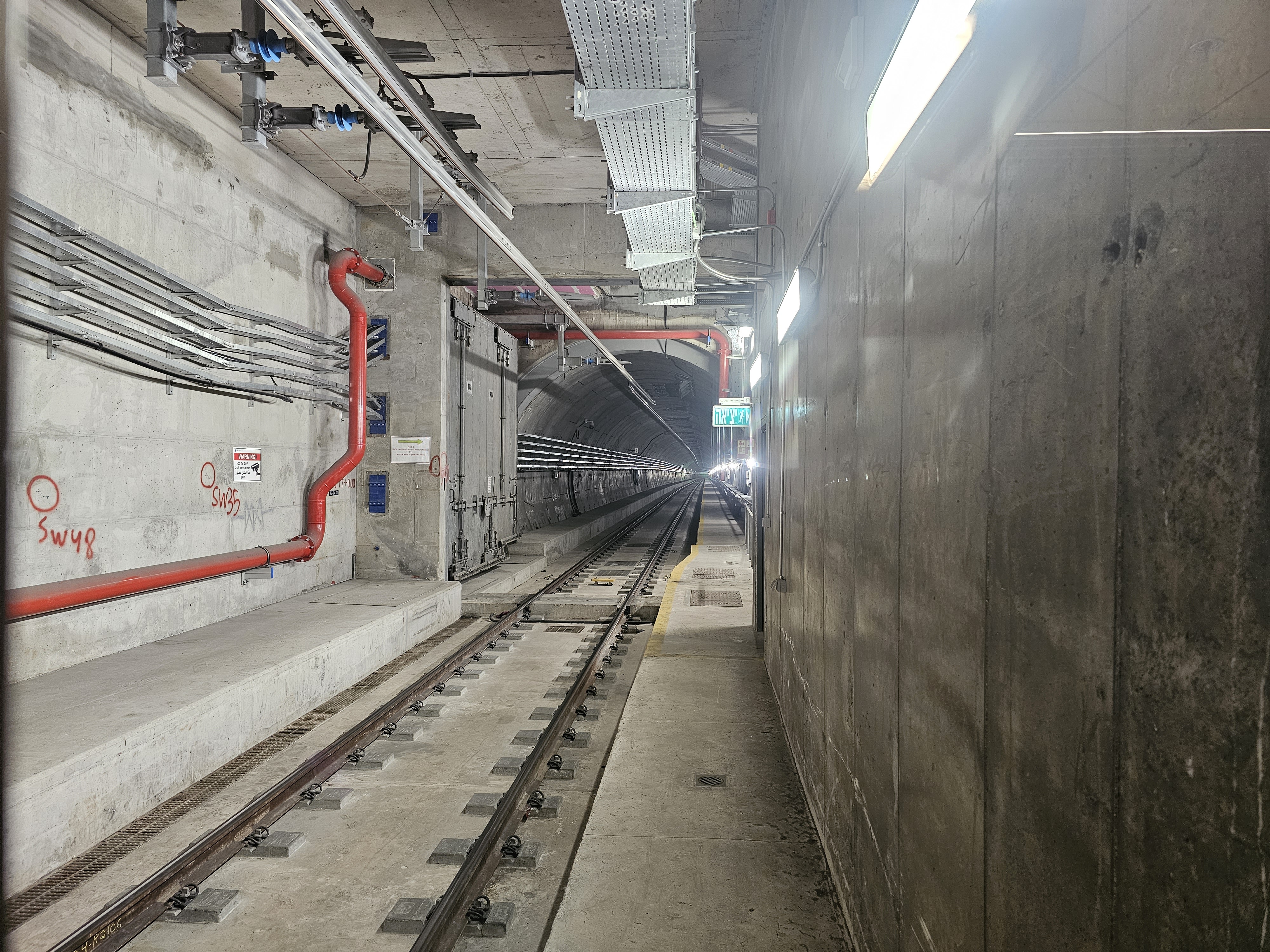 Впечатлил своим объёмом однопутный тоннель: такие широкие пешеходные дорожки с обеих сторон пути вызывают зависть.