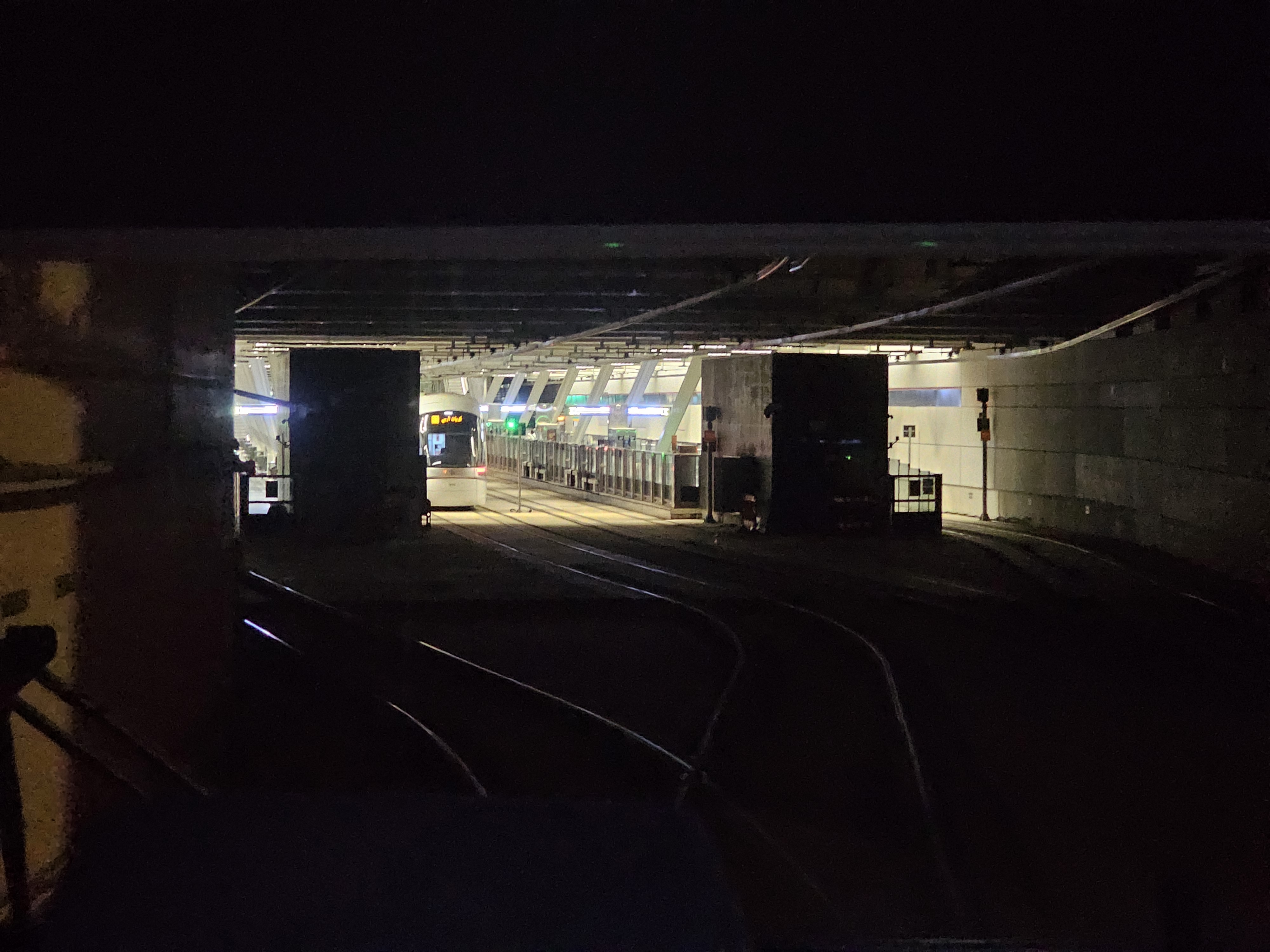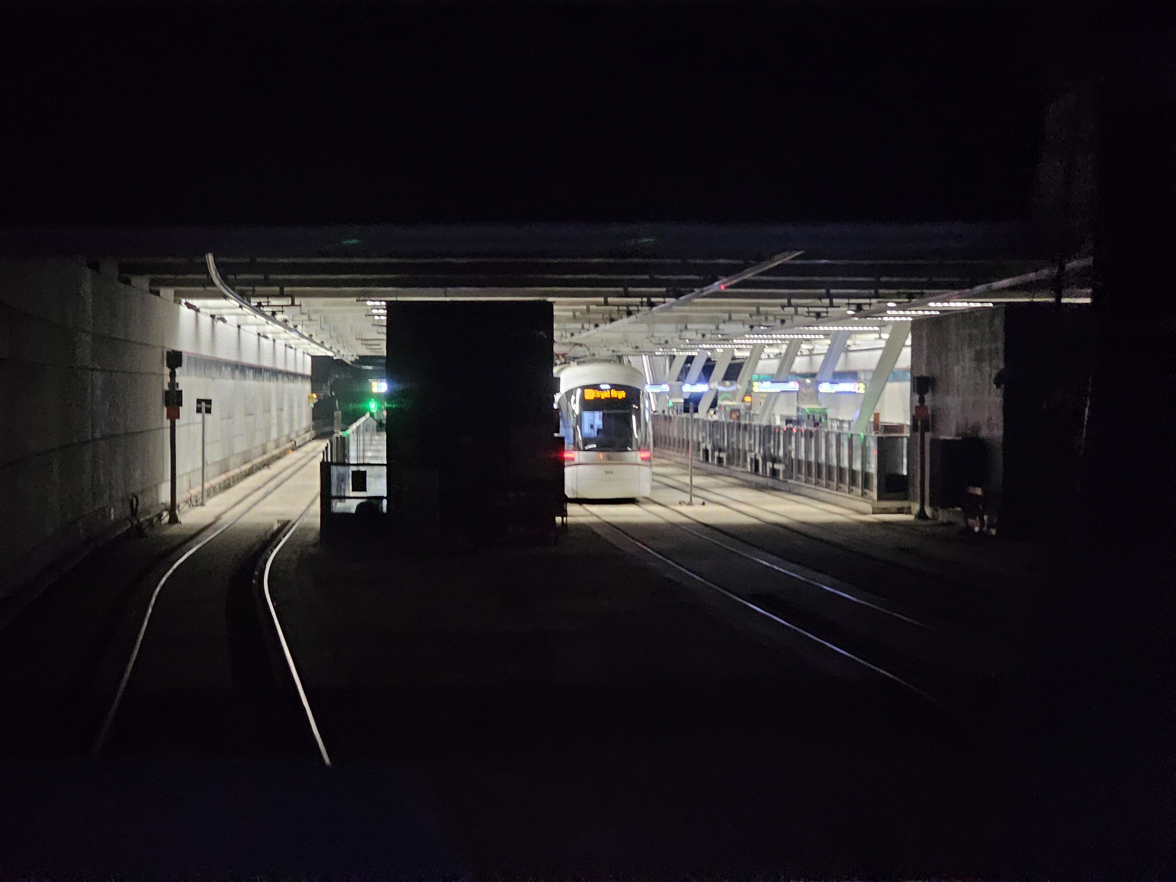 Подземная часть метротрама построена в лучших традициях советского метро. Наличие перегонного затвора - лучшее тому подтверждение. Вот только не до конца разобрался, каким образом шина верхнего токосъема убирается из проёма при закрытии полотна затвора.