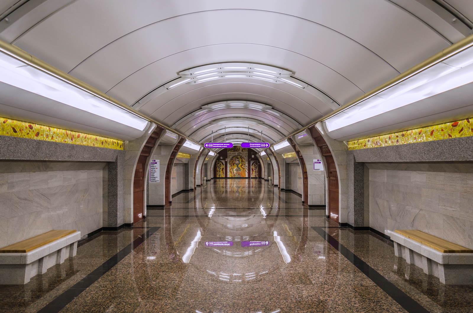 Однако зал сделан длинным, почти полностью, станция просторная.